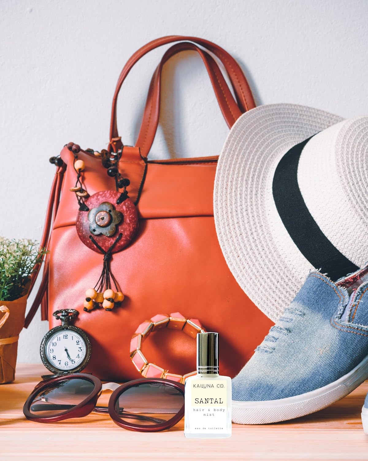Santal Natural Hair & Body Mist Spray, Pure Essential and Fragrance Oils, Alcohol-Free, Handmade in California, 0.5Fl Oz