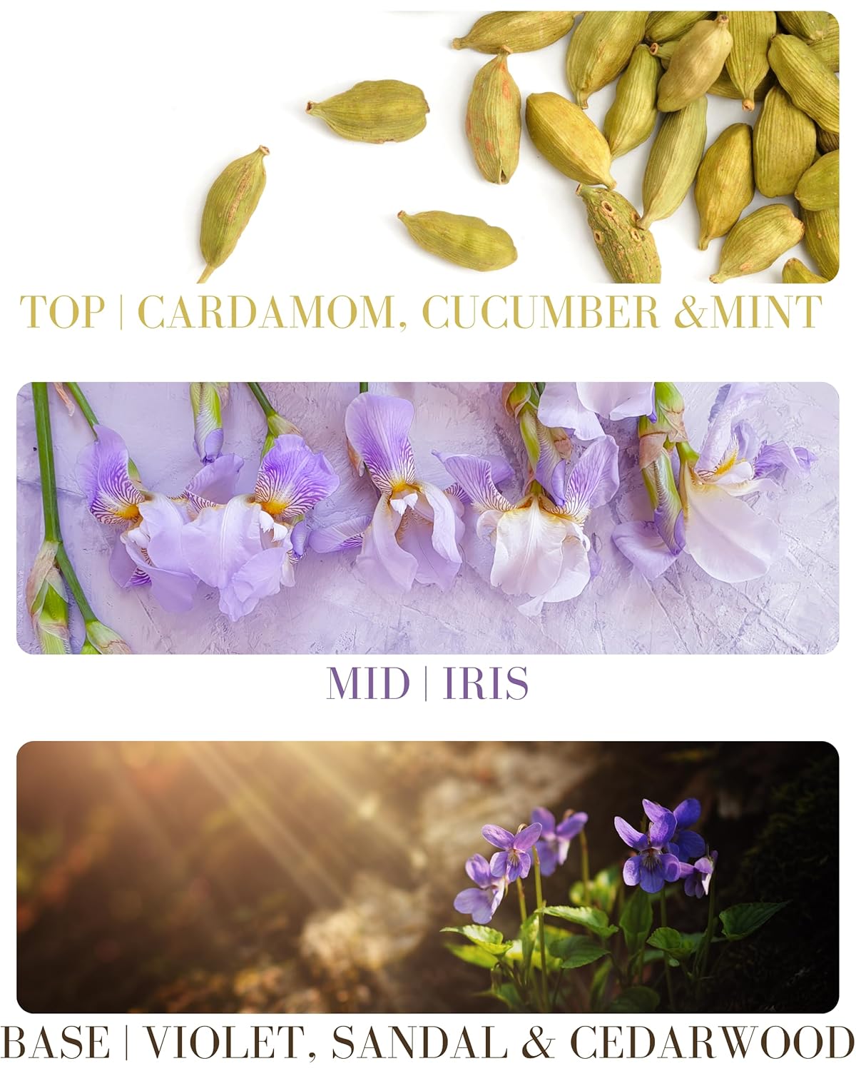 • SCENT PROFILE - Top: Cardamom, Cucumber, Mint, Mid: Iris, Base: Violet, Sandalwood, Cedarwood. Santal is a fragrance that embraces the idea of freedom, roaming wild, and being under big skies. Bursts of fresh green notes await you with Cucumber and Mint, followed by Cardamom, Iris, and Violet notes that tumble into Australian Sandalwood, Cedarwood, and warm spices. All are rounded out with leather, musk, and notes of spice. One to use as you sit around a campfire as the sun slowly sets.