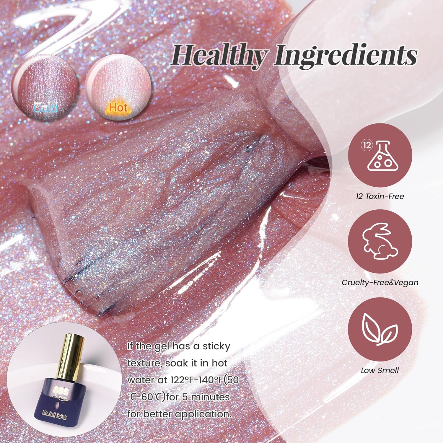• Warnings&Tips:Please conduct an allergy test before use to ensure safety. This professional formula is for nail application only, avoid eyes and mouth. Keep out of reach of children. Keep bottle tightly capped and protected from light after use.