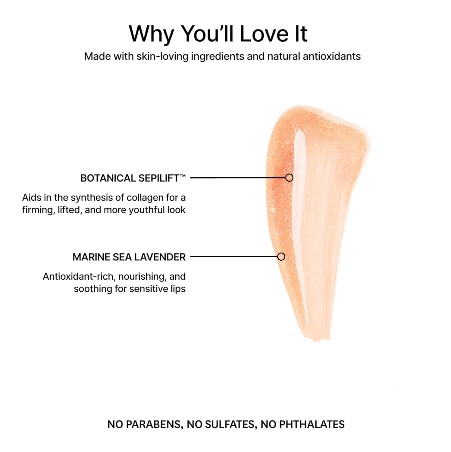 • Experience firmer, plumper-looking lips with our new Jillian Dempsey Lip Gloss that works on all skin tones. Infused with active plant-based ingredients, this revolutionary formula promotes increased collagen synthesis, leaving your lips fuller and more voluminous.