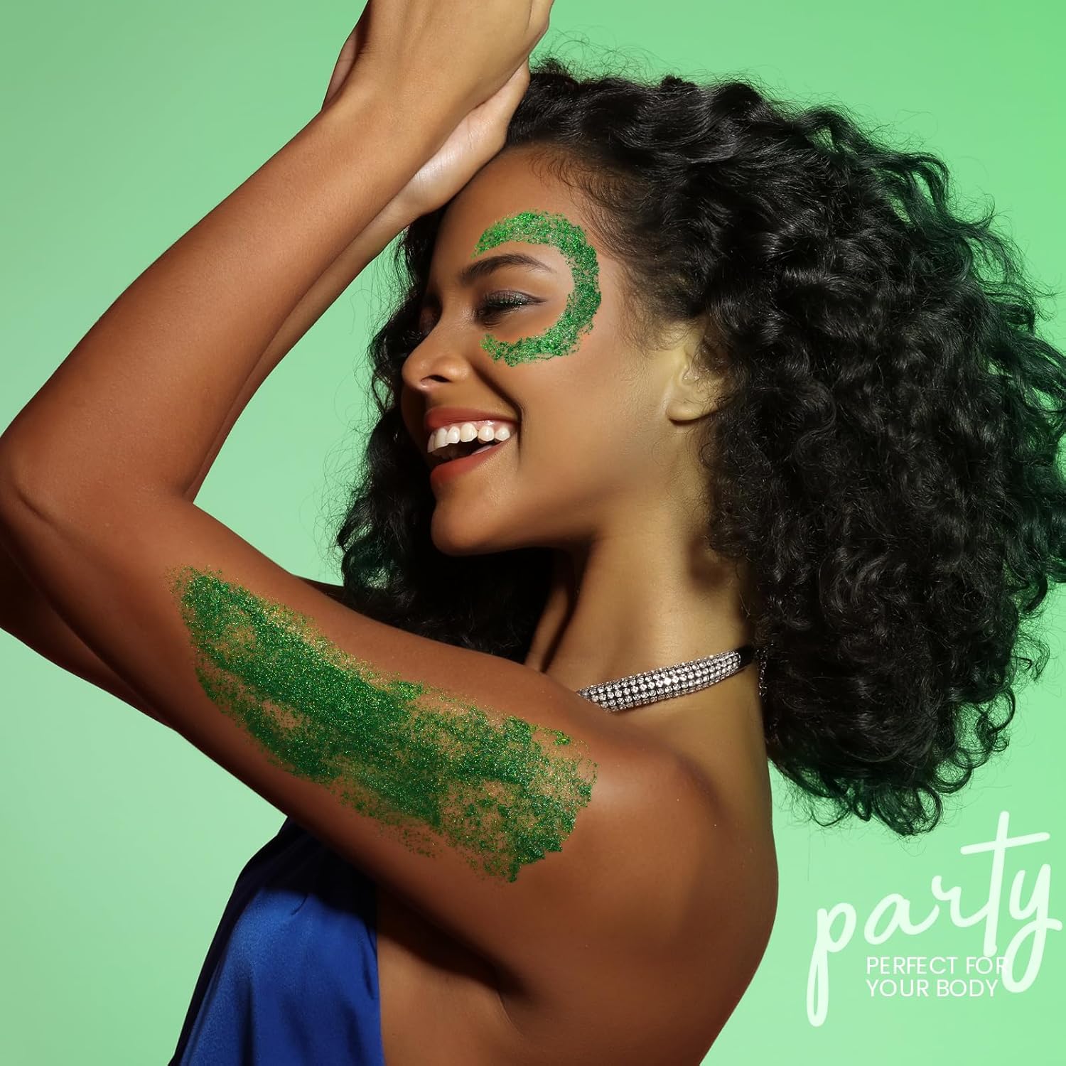 • GREEN BODY GLITTER GEL: Teenitor body glitter gel is easy to apply and dries quickly. With gel mixed in the glitter, it can minimize fall off. It has cosmetic grade gloss and is gentle for use on your skin. The holographic glitter gel comes in a generous 2.82 ounce bottle, providing you with plenty of product to create your desired look