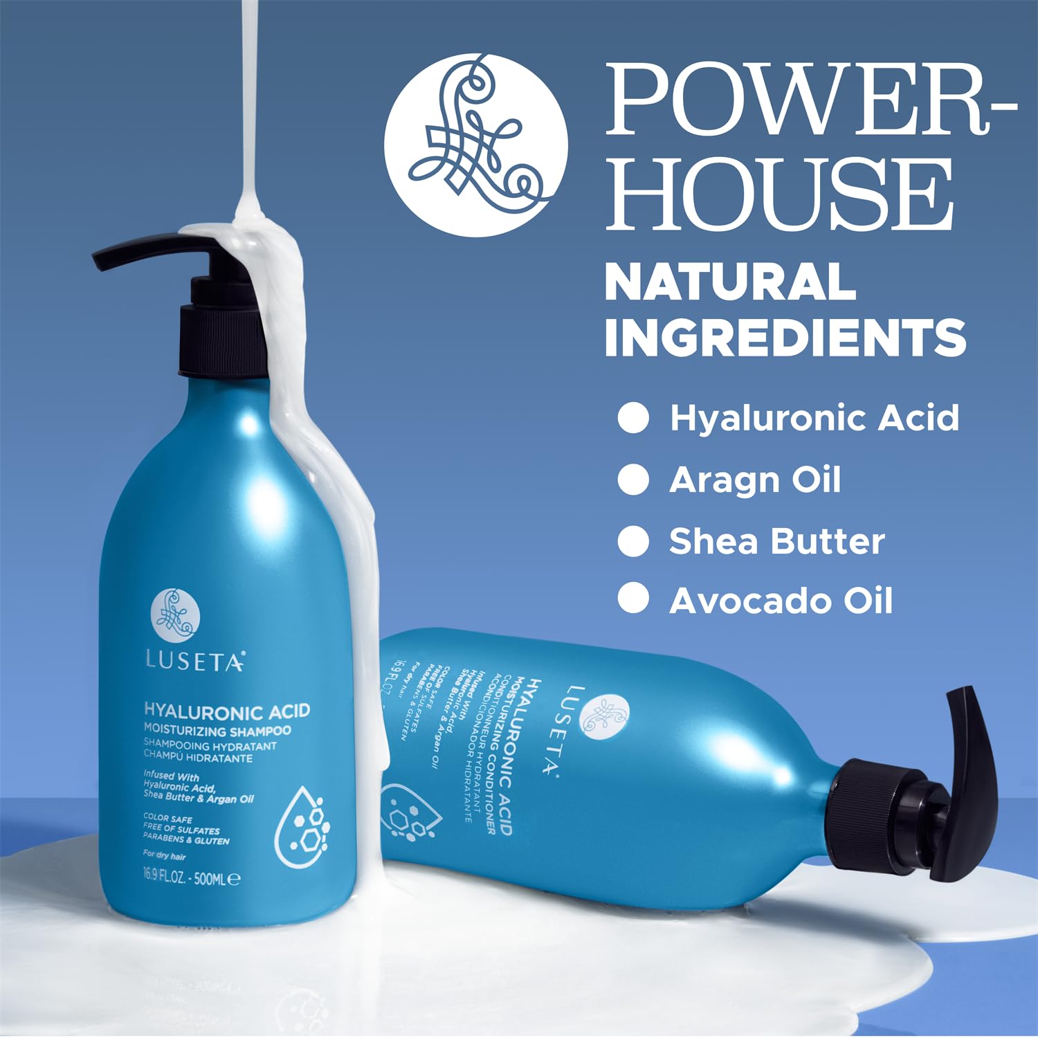 Luseta Hyaluronic Acid Moisturizing Shampoo & Conditioner Set for Dry and Damaged Hair, Sulfate Free Shampoo and Conditioner for Women Infused with Argan Oil and Shea Butter Paraben-Free2 x 16.9oz