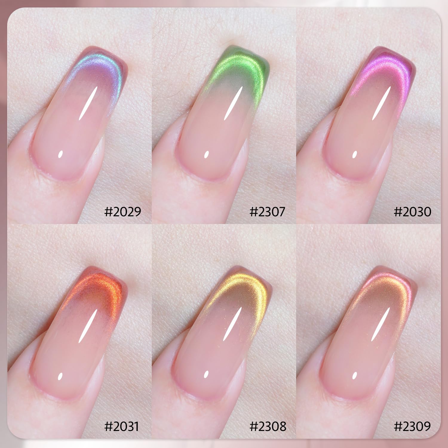 • Package Includes: 6 gel polish colors of 0.25 fl.oz (7.3ml) each + cat eye magnet. Professional gel nail set to enjoy the nail art from the comfort of your own home!