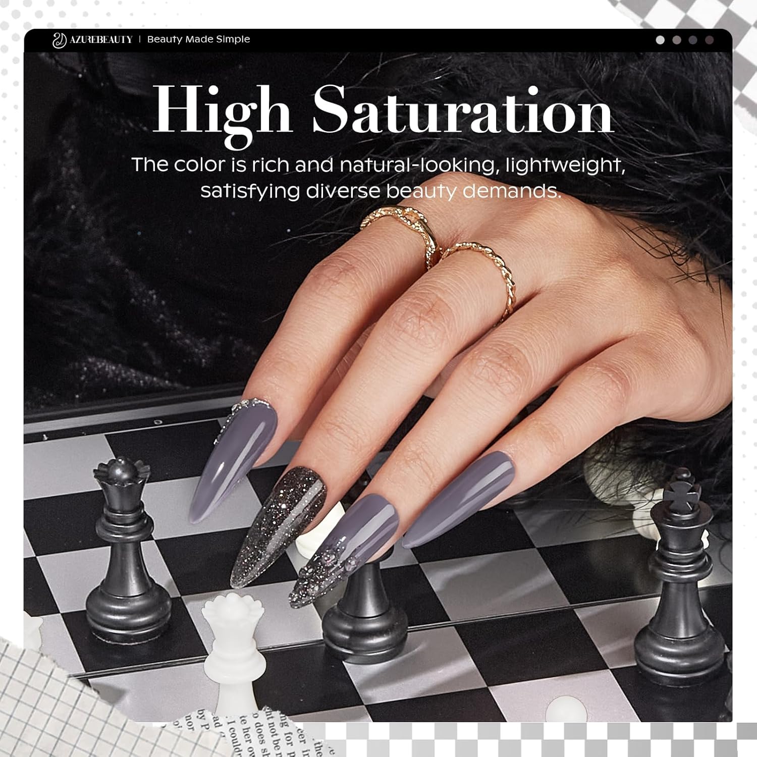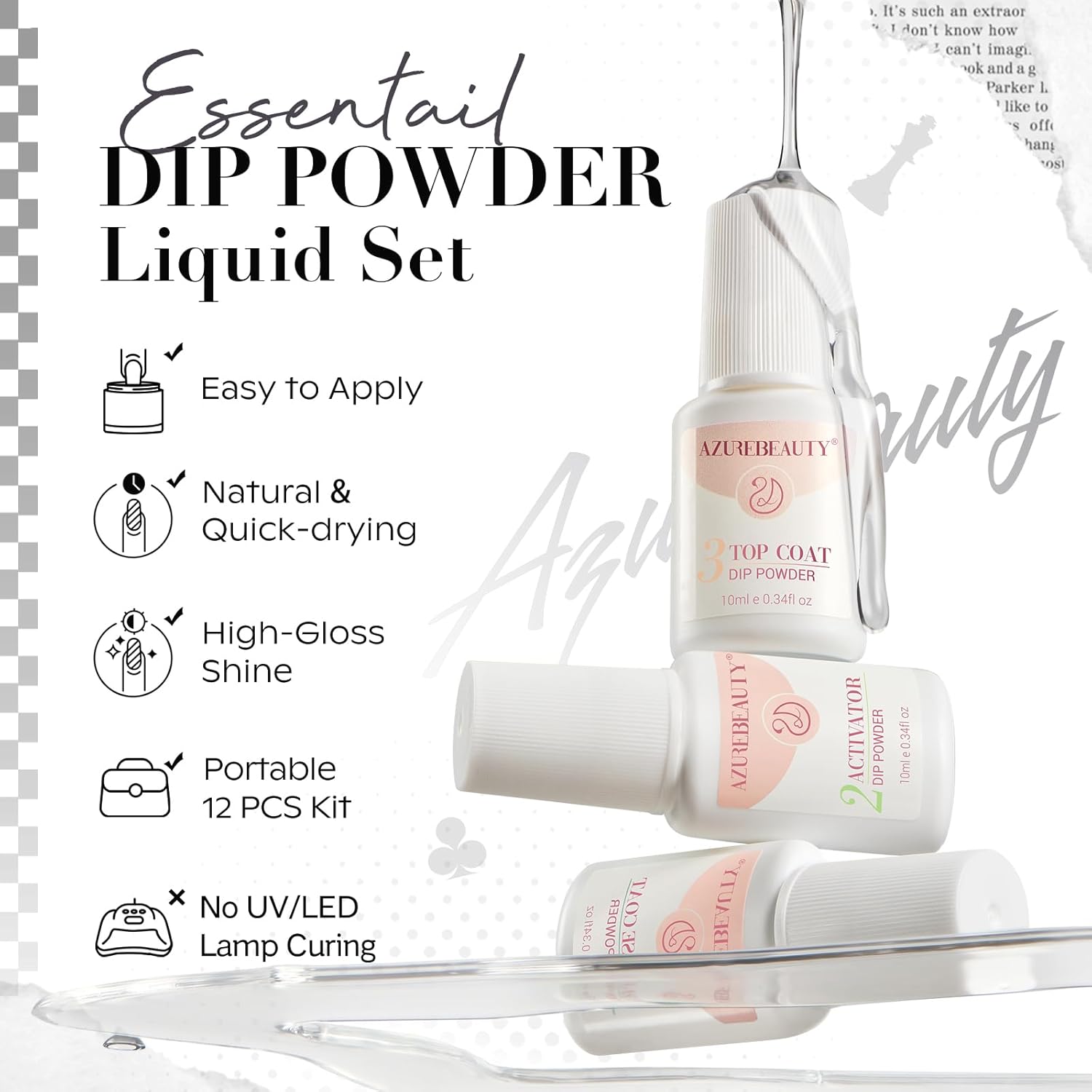 • What U Get: AZUREBEAUTY 12 PCS elegant dip powder nail starter kit—4*10 g color powder(pale gray, celadon, steel grey, shimmery black), 3*10 ml liquid set(base coat/activator/topcoat), 2*liquid brush replacement, 1*nail brush,1*nail file, 1*dip powder recycling tray