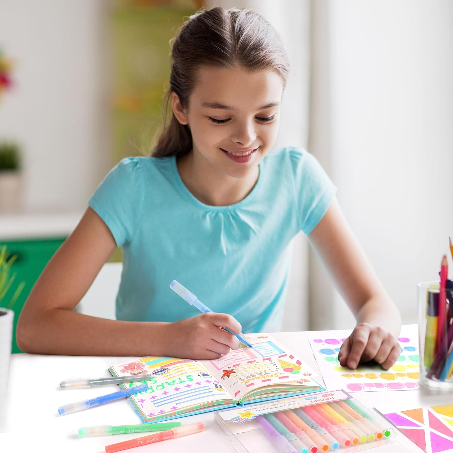 • WIDELY USED: Great for highlighting, underlining, drawing, card making, bullet journaling, bookmarking, doodling, scrapbook decorating, poster making and DIY craft projects. Suitable for kids, adults, school office supplies. Ideal gifts for children, students, women, artists. HANKU highlighters use high quality ink which is non-toxic and odor-free. They are safe for people of all ages. Quick-drying, no bleeding, smooth writing. It provides you a pleasant using experience