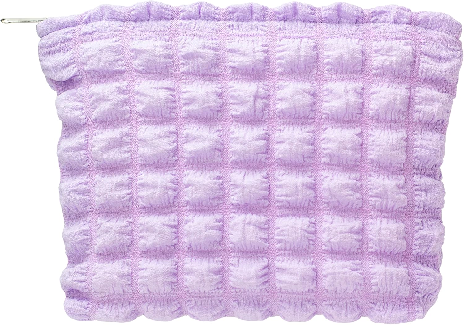 PAZIMIIK Floral Makeup Bag Large Cotton Zipper Pouch for Purse Travel Canvas Make Up Organizer for Women Cosmetic,Bubble Purple