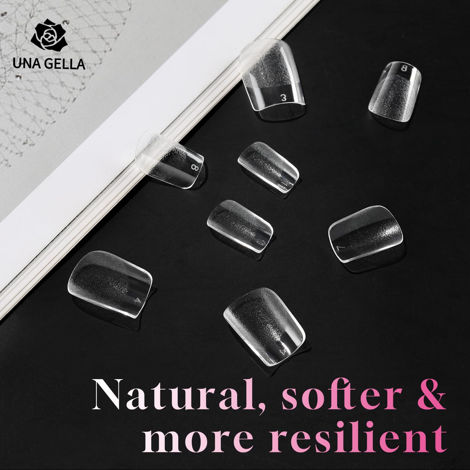 UNA GELLA Extra Short Square Nail Tips, 312pcs XS Square Gel Nail Tips, Soft Gel Full Cover Half Matte No Need File Acrylic Fake Nails for Nail Extension Home DIY Nail Salon 12 Sizes