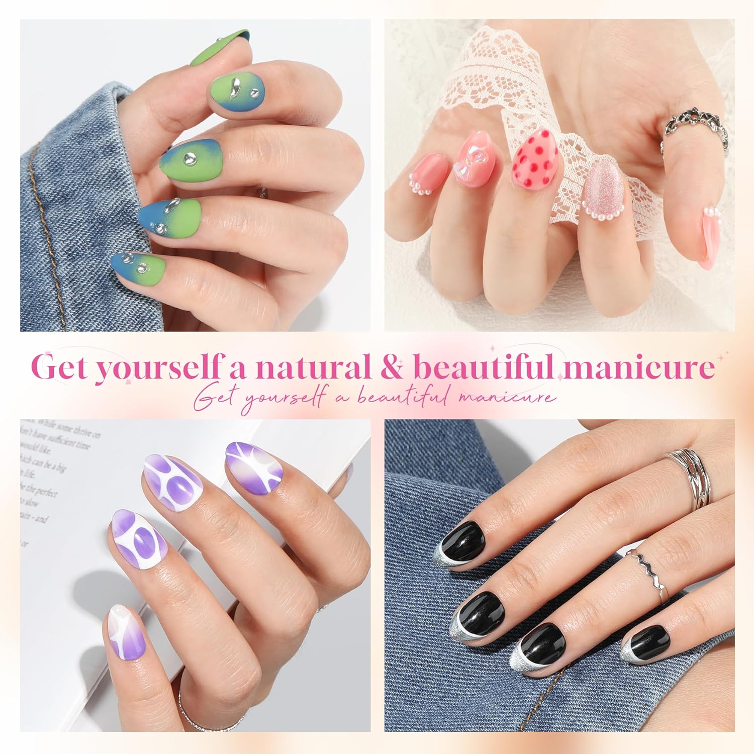 • ❤️【Natural Fit Effect】 The extra short almond gel nail tips feature “ Thin back edge, thick front edge”. The thinner back edge can make the full cover nail tips fit your nails better. Our tips have smooth edges with a gentler curve, making them fit comfortably against the nail bed without feeling tight. They maintain color well, don’t separate or peel, and make the nails look more natural.