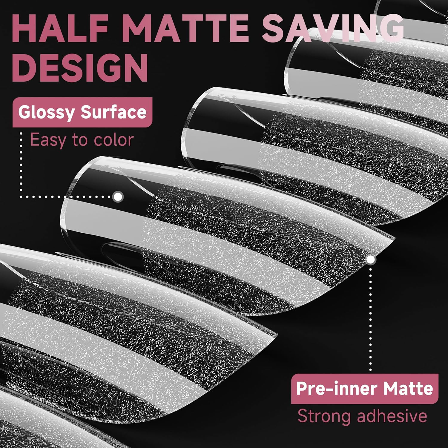 • ❤HALF MATTE GEL NAIL TIPS-Our medium square nail tips pre-shape half matte saving design, no extra filing required! The clear square nails surface with a glossy finish for easier to color. The inner deep matte firmly adheres to the nail without worrying about the nail pop off easily. Easily get beauty that lasts 28+ days. We are committed to bringing you professional, efficient and safe nail care.