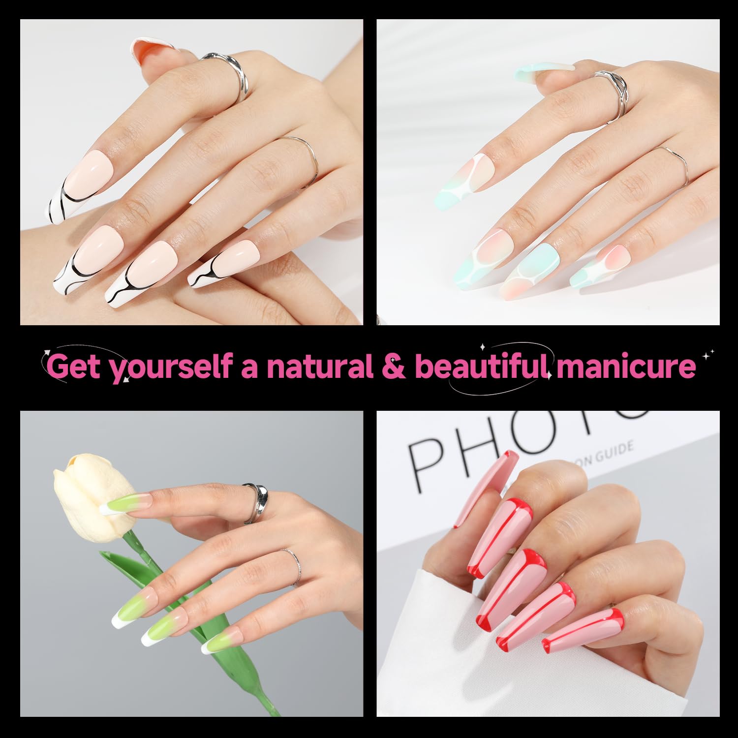 • ❤️【Natural Fit Effect】 The long coffin gel nail tips feature “ Thin back edge, thick front edge”. The thinner back edge can make the full cover nail tips fit your nails better. Our tips have smooth edges with a gentler curve, making them fit comfortably against the nail bed without feeling tight. They maintain color well, don’t separate or peel, and make the nails look more natural.