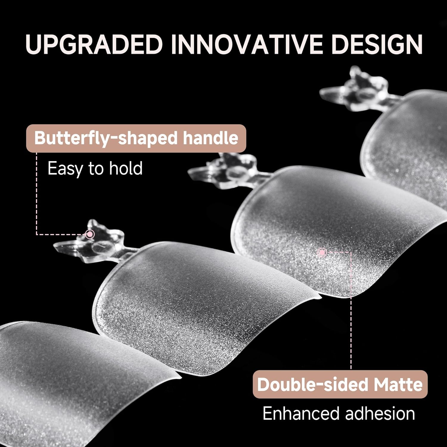 • ✨【15 Different Sizes】Press on toenails feature butterfly-shaped handles numbered “0-14,” offering 15 different sizes to fit most nail beds, especially wider toes. The handle design allows even the smallest gel toe nails to be picked up easily, ensuring effortless application and extension