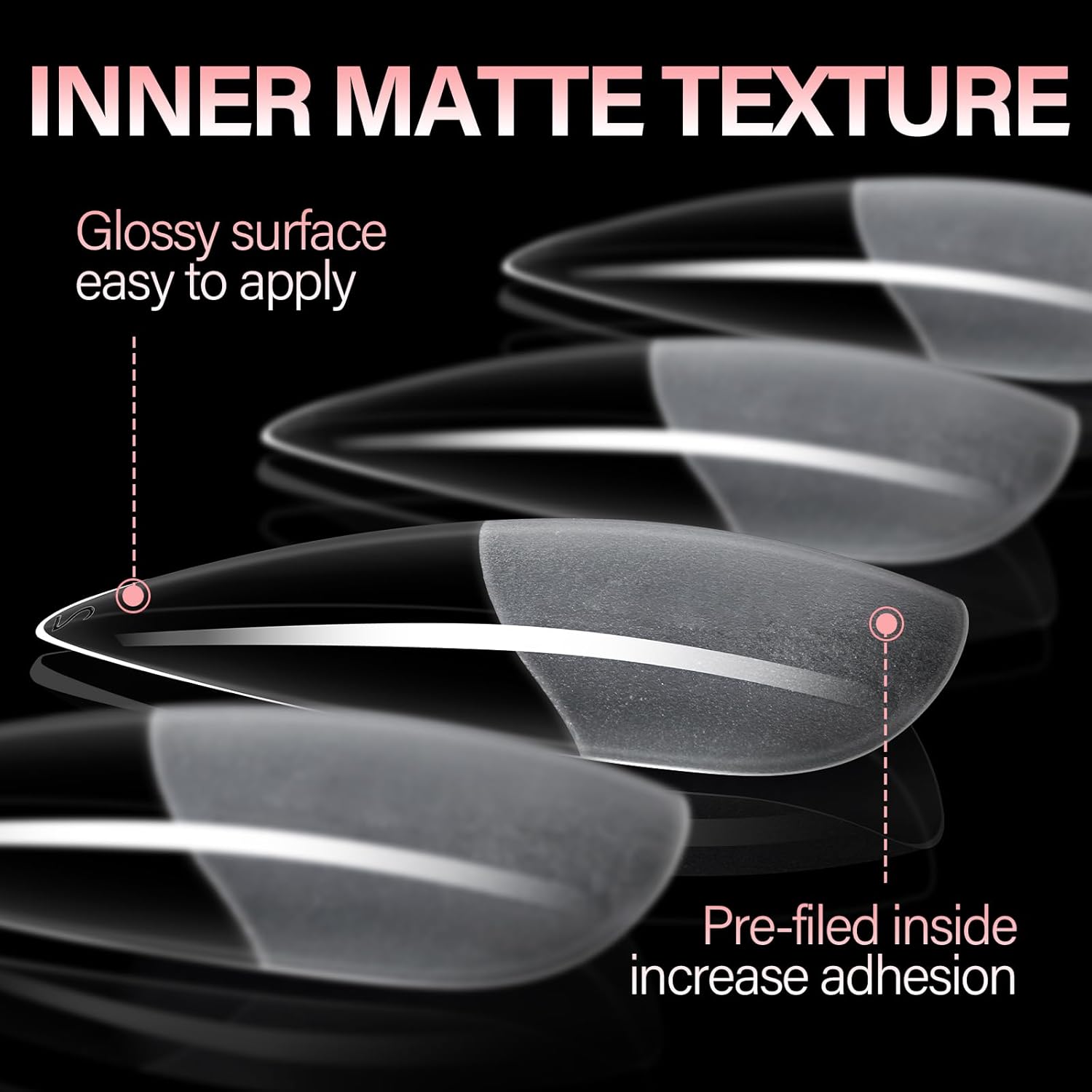 • Easy to Use: AILLSA's press on nails feature an inner matte texture and a thicker front edge and thinner back edge. This makes AILLSA nail tips more breathable, flattering, and reliable and eliminates the need to polish the surface and shape.
