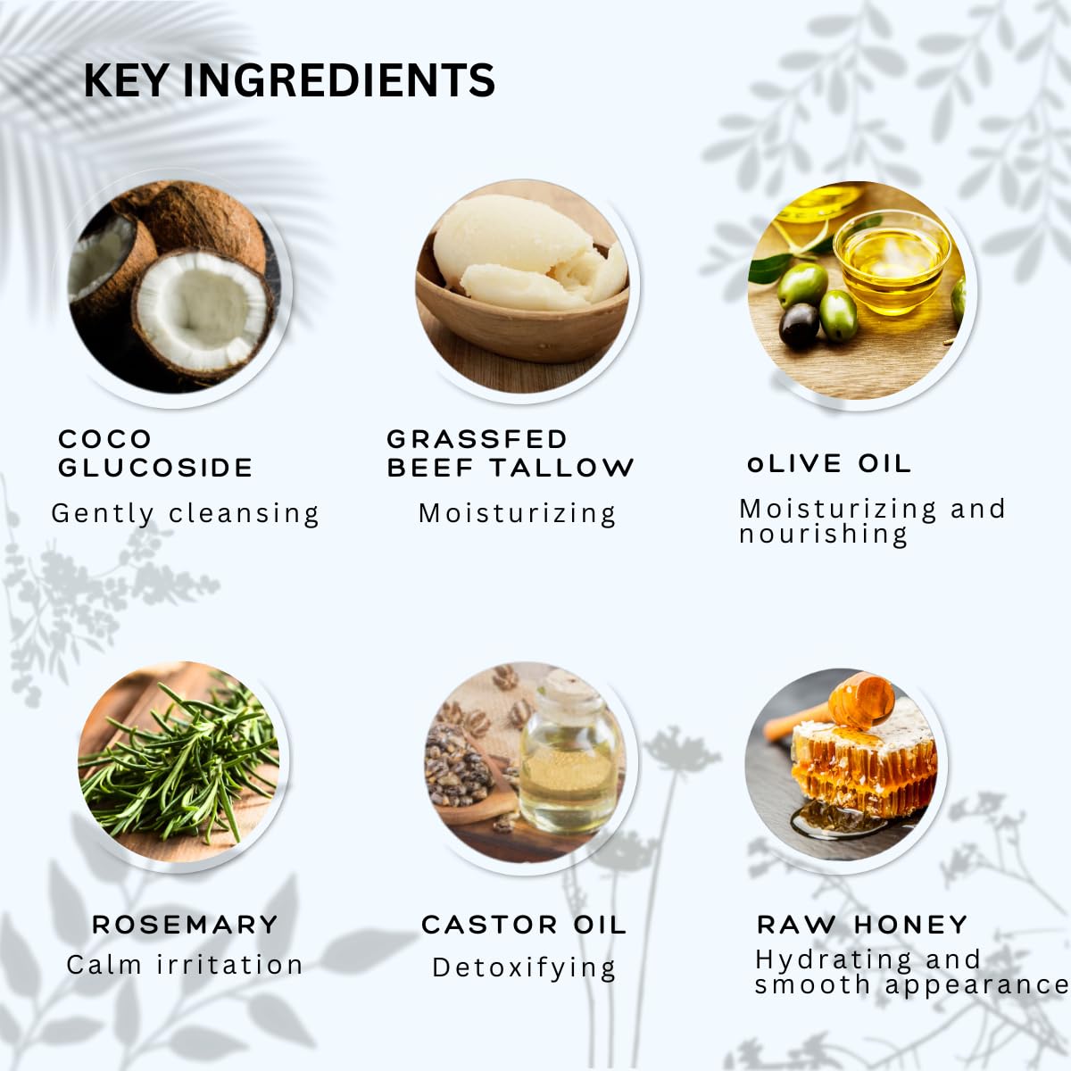 • MOISTURIZING: Grassfed beef tallow, Argan oil & Castor oil keep your skin moisturized and nourished after washing.
