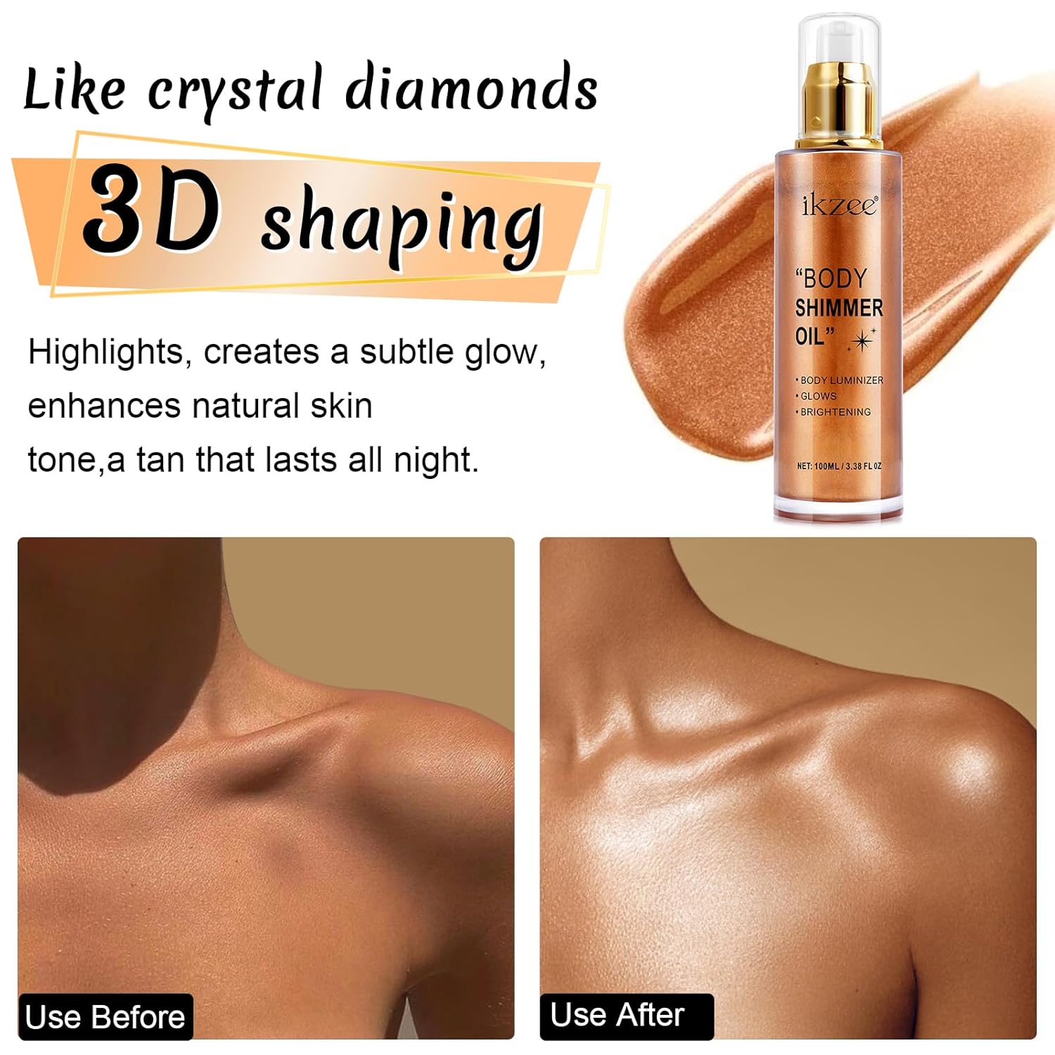 • ✦ SHIMMERING BODY GLOWING LUMINIZER -- This shimmer body oil brightens your complexion, the flecks of shimmer catch the light and make your skin glow, giving your skin an attractive shimmer in the sun, giving you a more natural and healthier complexion.