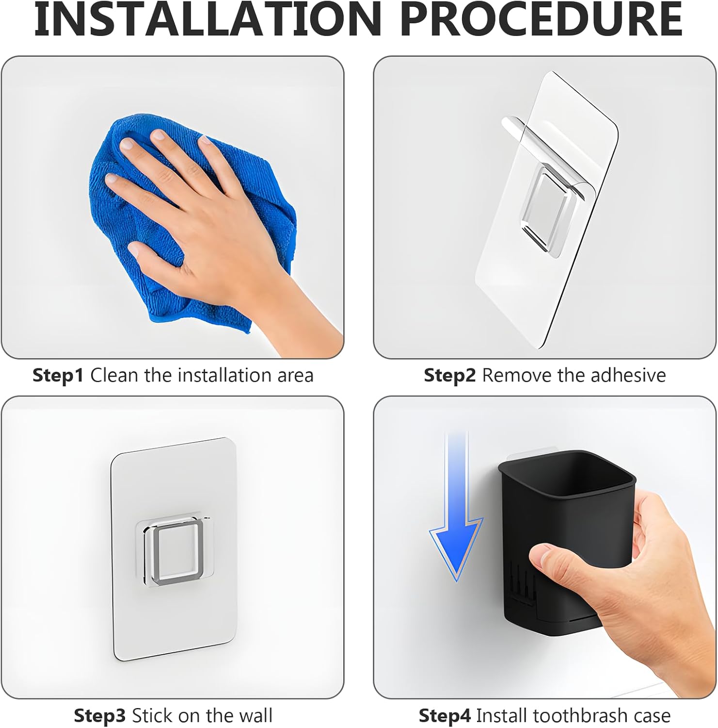 • 【Easy to Install】--No drills or holes are needed. Transparent adhesive leaves no damage to wall, please clean up the back side and the surface of the wall before use, tear off the protective film of the bracket and stick it directly on a smooth surface, If you want to use it in another location, you can tear it off and reuse it. The toothbrush holder wall mounted can be removed at any time for cleaning and hanging again.