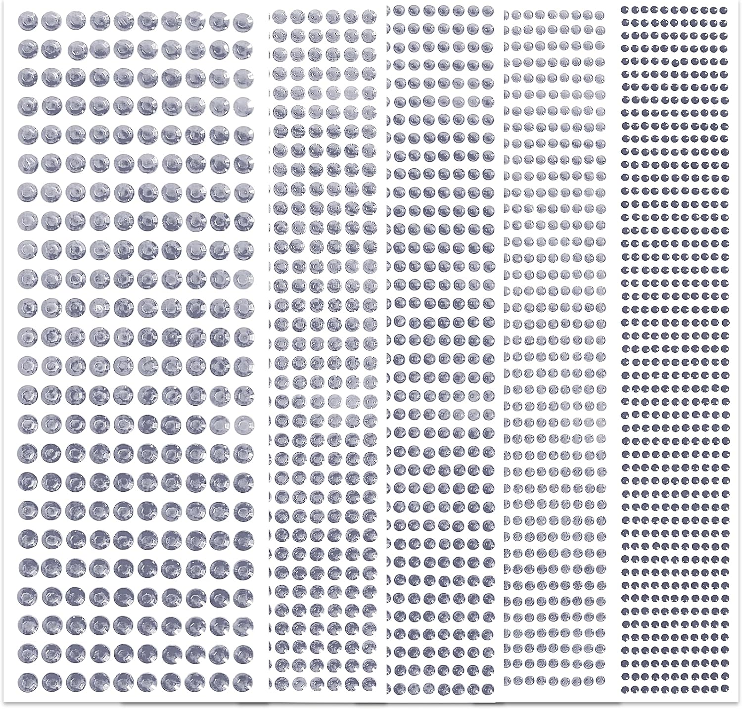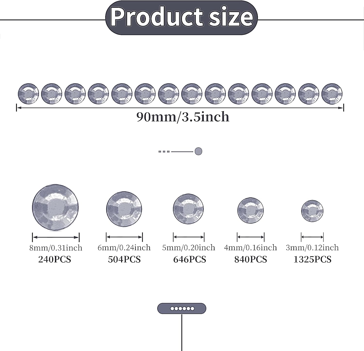 • 💎[ Value Set ] Package contains 5 sheets rhinestone stickers, 3555 pieces nail gems in 5 sizes, including 1325pcs of 3mm, 840pcs of 4mm, 646pcs of 5mm, 504pcs of 6mm, 240pcs of 8mm, enough to meet your various makeup and craft projects needs.