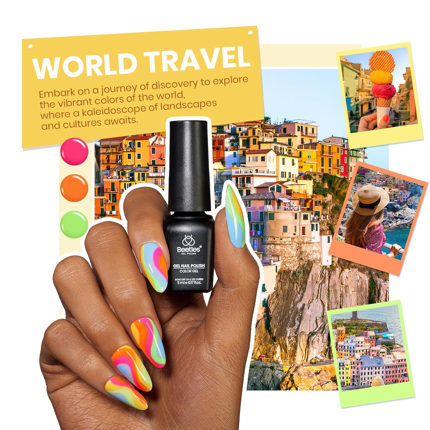 • Perfect Beauty Gift Sets for Her: These beetles gel nail polish colors that include red, black,nude, white, blue, and many other popular color cat eye gel nail polish. World Travel Collection gel nail polish can not only decorate and beautify your nails, but convey your emotions, embark on a journey of discovery to explore the vibrant colorsof the world, where a kaleidoscope of landscapes and cultures awaits.