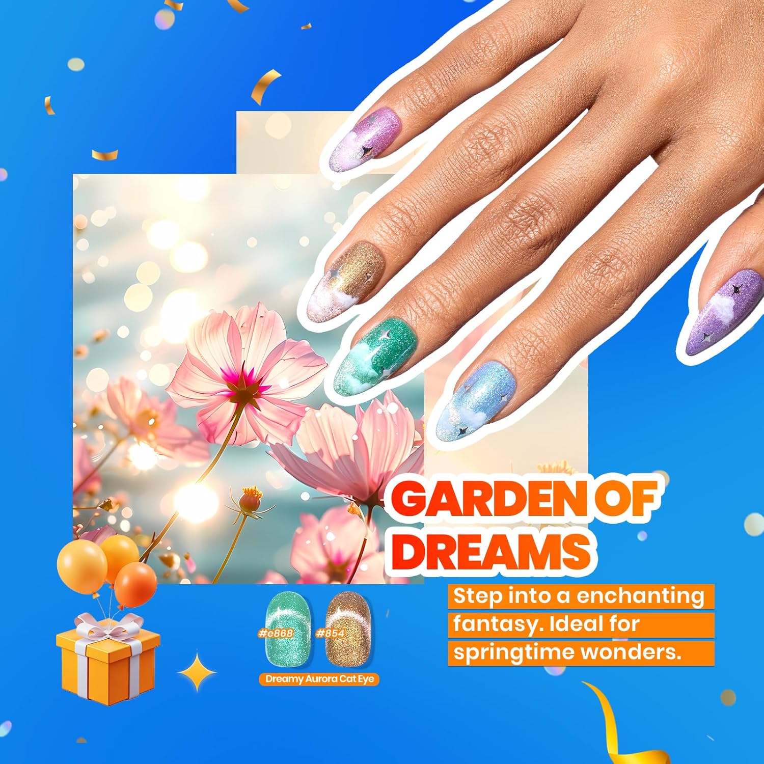 • Luxury Cat Eye Gel Polish Set: Beetles 36 colors cat eye gel nail polish set includes five kinds of cat eye effect gel polishes(moon cat eye,dreamy aurora cat eye,rainbow candy cat eye,velvet cat eye,chameleon cat eye) beauty gift sets, allowing you to create various styles. Unleash endless possibilities and enjoy DIY cat eye nail designs.