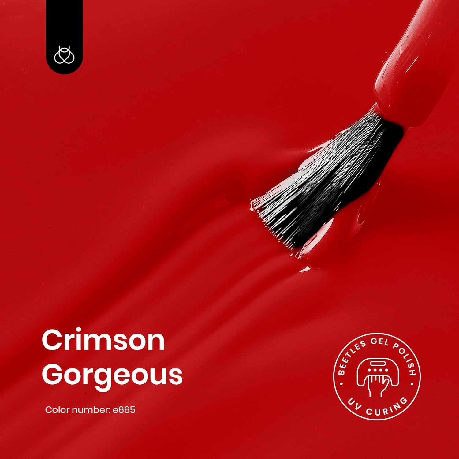 Beetles Red Gel Polish,Crimson Gorgeous Gel Polish, Red Color Nails Glossy Long Lasting Soak Off U V LED Gel for Nail Art Salon Quality DIY