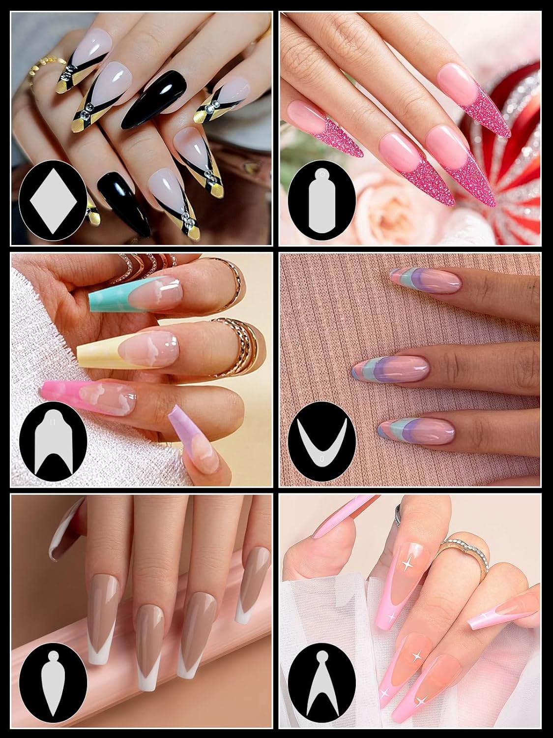 • Easy Application: These duet system nails for french manicure come in 18 shapes and 1 sticker comes in various sizes. The stickers adhere to the nail, allowing for seamless application of poly nail glue, solid builder nail gel or gel polish for a flawless French tip design.