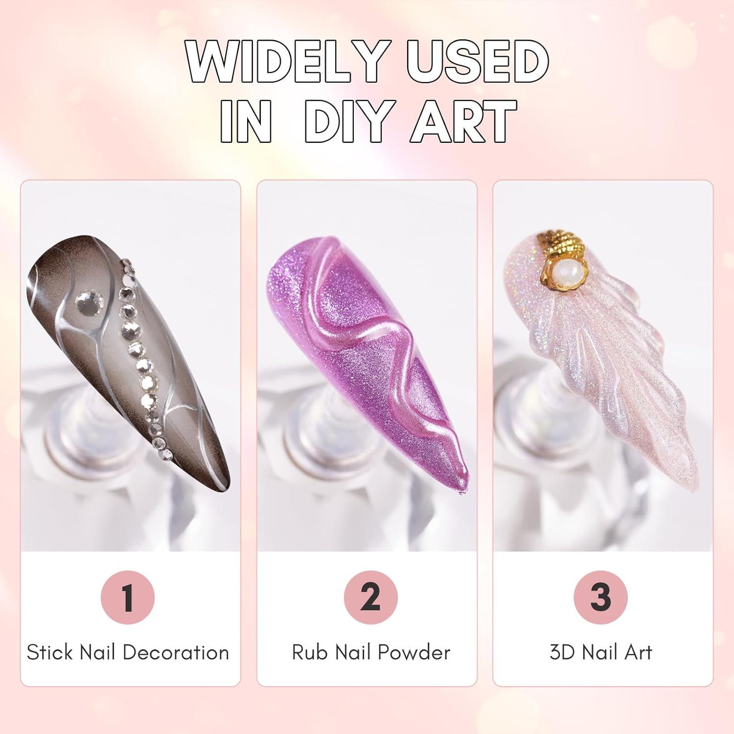 • Notice - The gel glue is only used for nail and no direct contact with the skin. If you feel unwell, instantly stop using. We recommend doing a skin test before use chrome silver gel polish and stop using it immediately if you experience an allergic reaction. Please feel free to reach out to us with any questions regarding the product and we will be happy to assist you