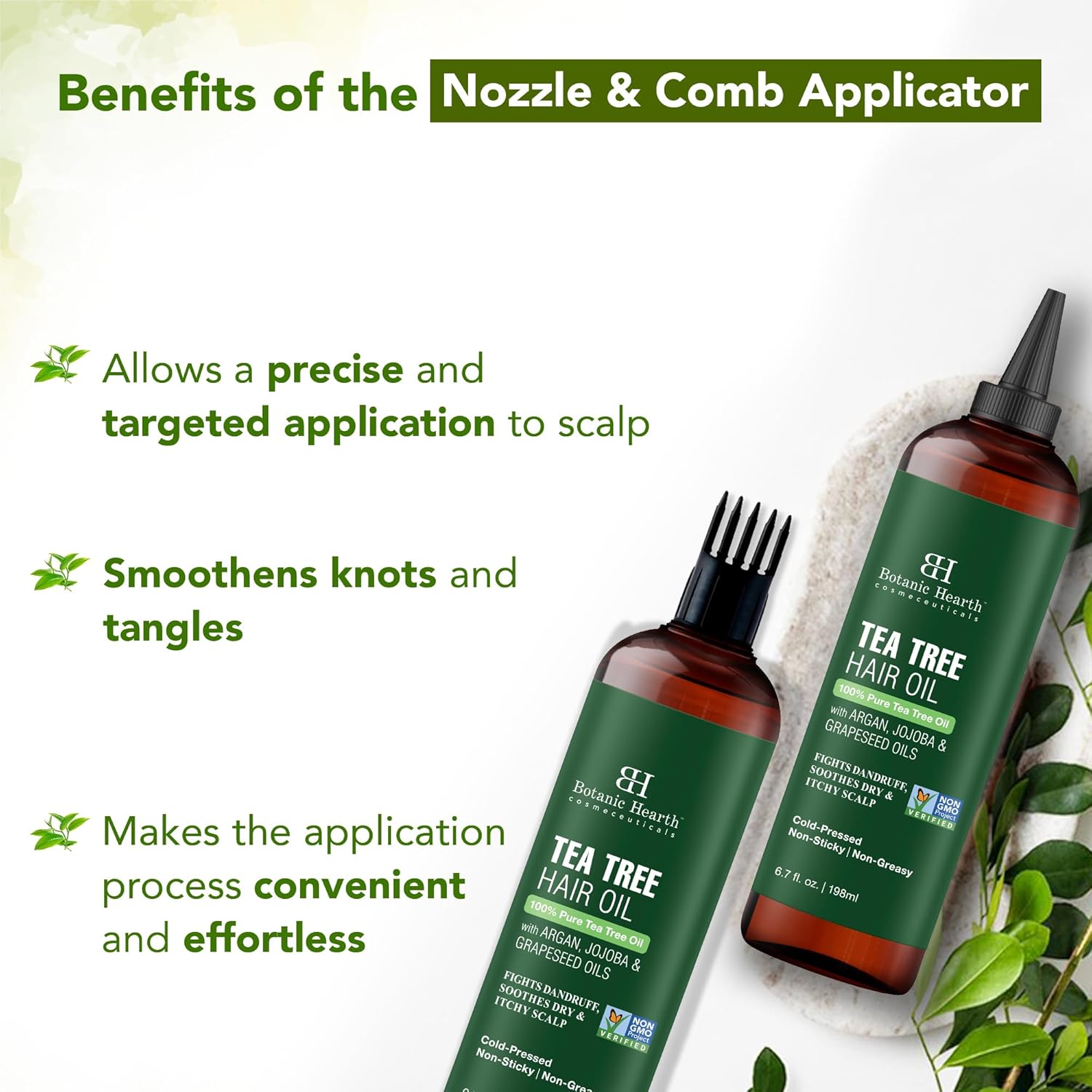 Botanic Hearth 100% Pure Tea Tree Oil For Hair (6.7 Fl Oz -Pack of 2) | With Jojoba & Grapeseed Oils | Hair Oil Repairs Dry Damaged Hair, Strengthening, Healthier Hair- Hair Tonic