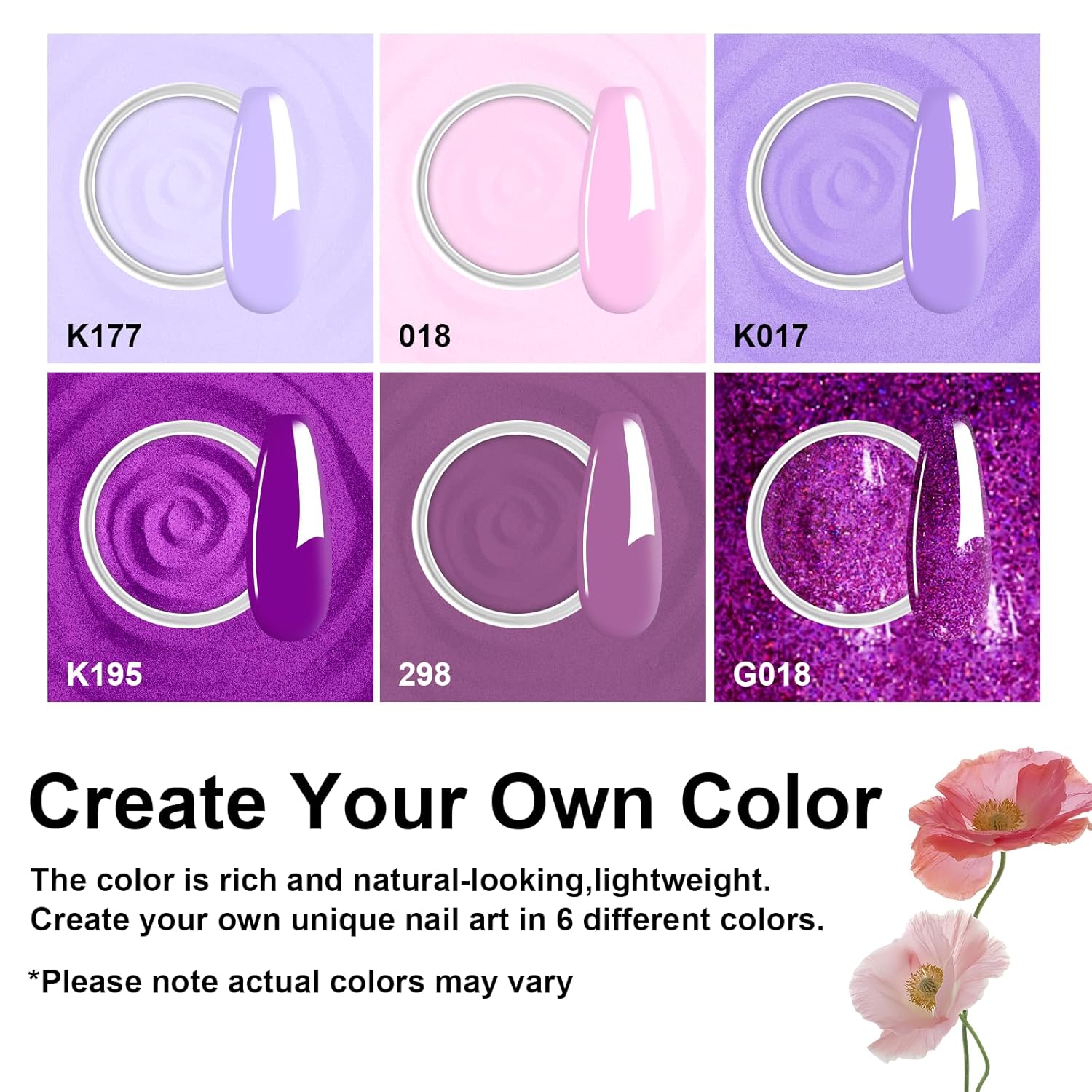 • Included Components : Dip Powder(6*0.35oz), Dip Liquid Set(4*0.5floz), Nail Brush*1, Nail file*1,Substitute brush*3