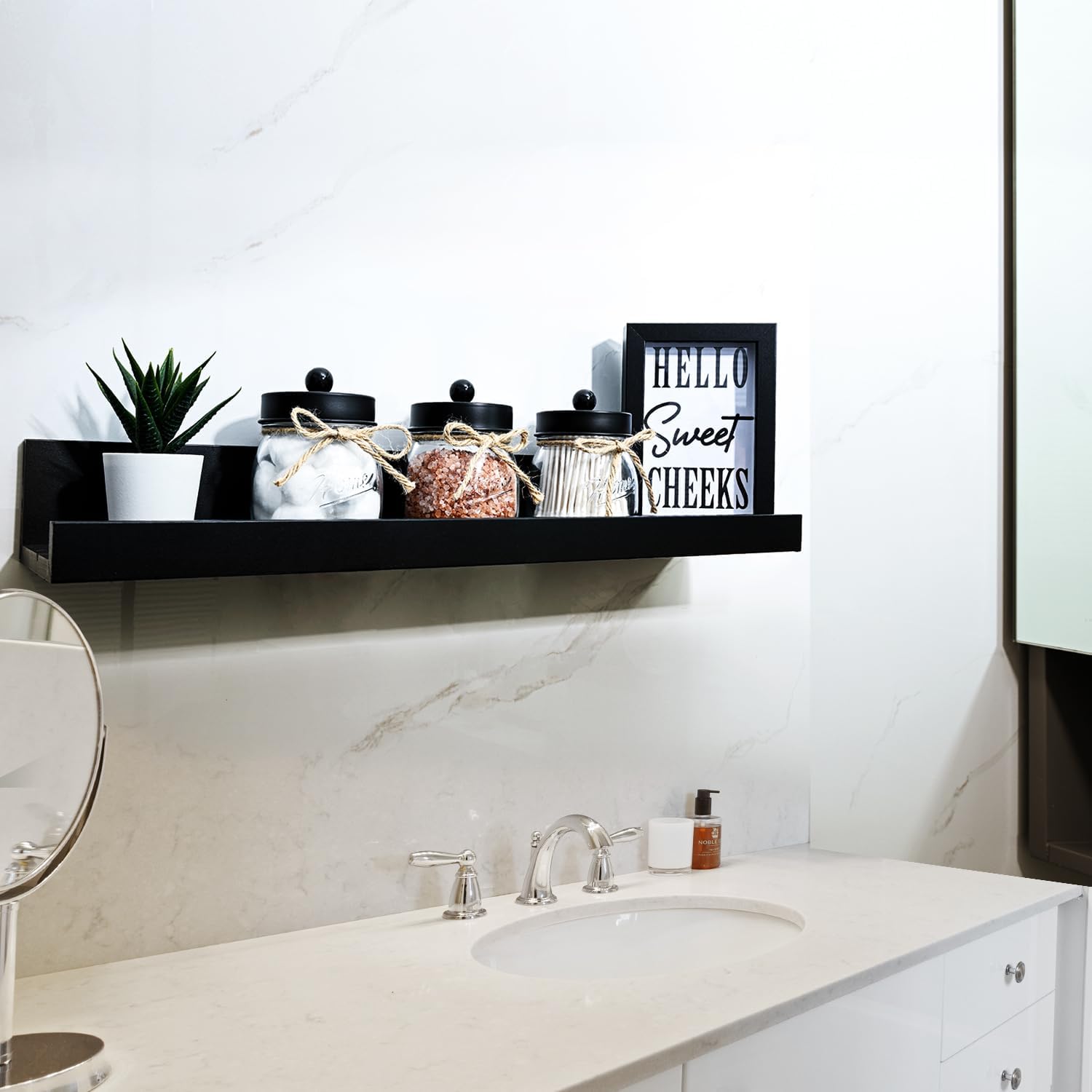 • Easy to Open and Close: This bathroom set includes three 8-ounce glass mason jars with standard-size metal lids. Perfect for any bathroom and they are small enough to fit neatly and keep by the sink and not get in the way or make the counter look cluttered. These lids provide a secure fit, an easy-open design, and rust-resistant properties. Please note: the lids are designed for a lift-off mechanism rather than a screw-on closure. It makes it so much easier to lift off the top and reach in for a cotton ball or cotton swab.