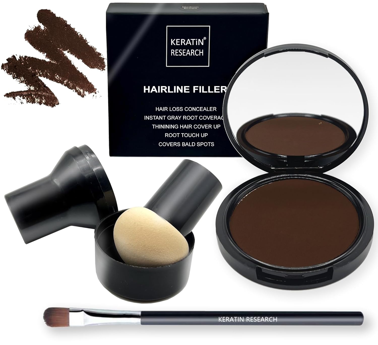 • Warm Medium Brown color. ROOT CONCEALER- Keratin Research Hairline Filler, a Premium Root Cover Up, is your secret weapon for at home or on-the-go. Camouflage roots and grays instantly, giving you full great looking hair! The Cover Up Powder also conceals thinning hair and hair loss, for an instant look of healthy volume. Packaging includes a large mirror and a great mushroom applicator. Root touch up powder is resistant to rain, sweat, and wind.