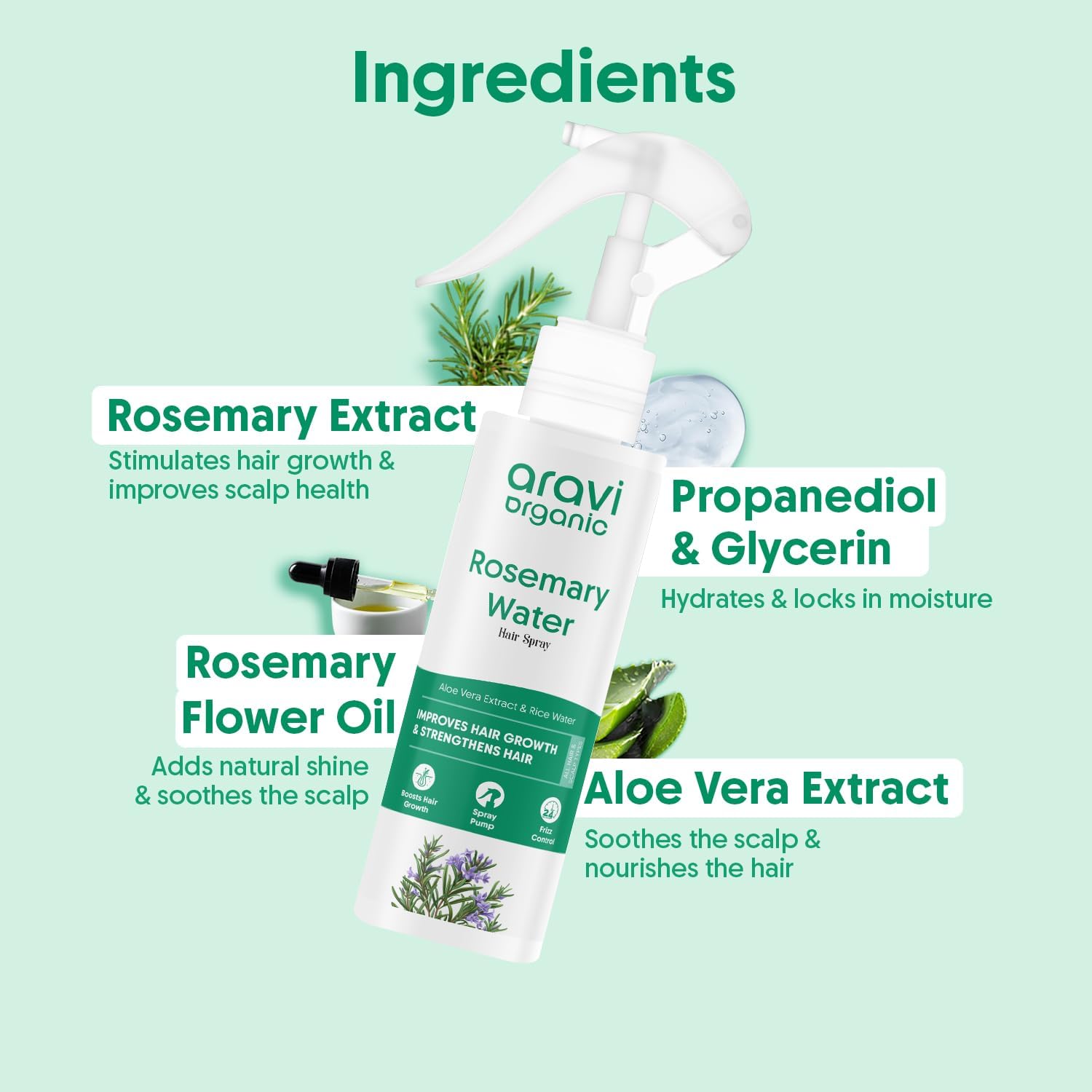 • Active Ingredients : Rosemary Extract, Hydrolyzed Protein, Glycerin and Aloe Vera Extract,