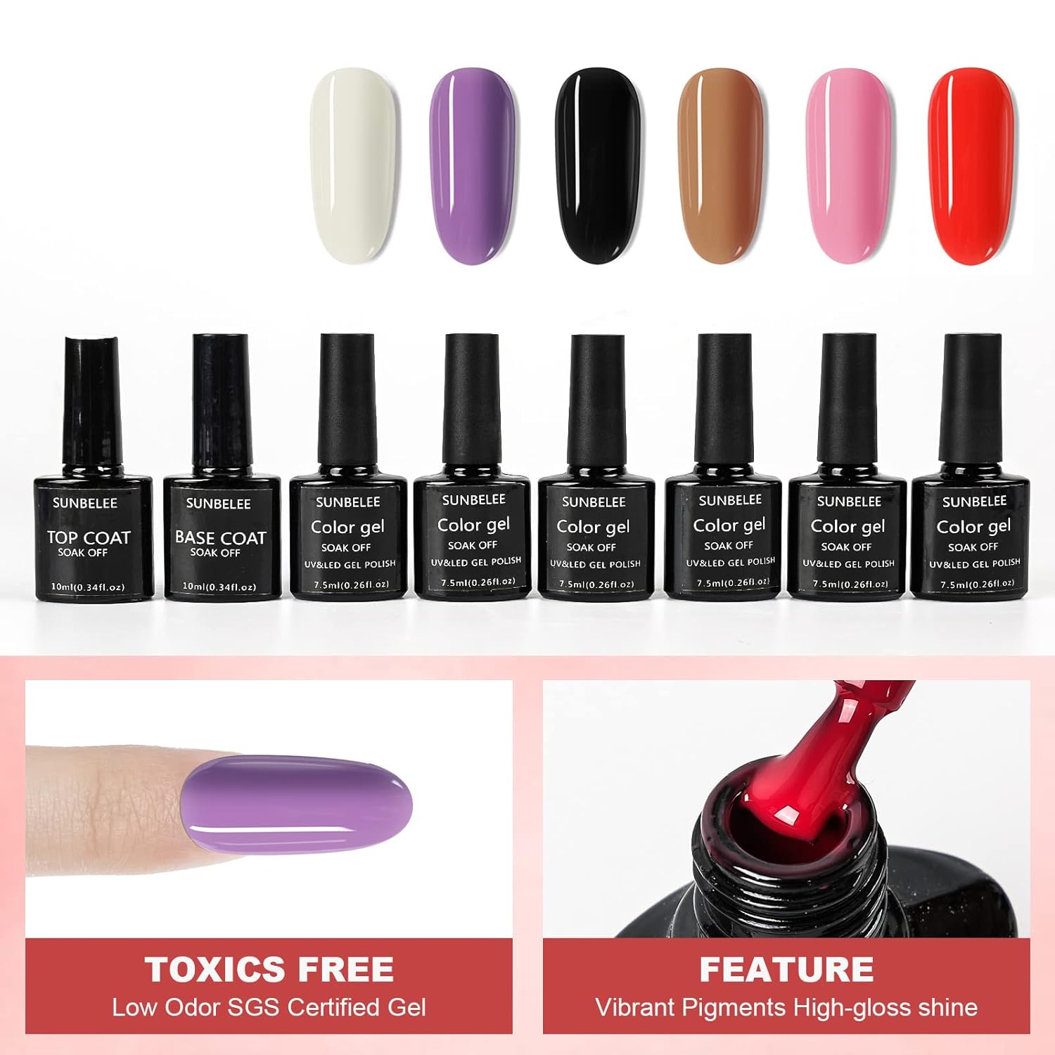 • High-quality Gel Nail Polish Kit: BLIFF 6 classic colors gel nail polish (7ml each bottle) smooth and easy application, even a nail starter can easily make nail salon-grade effect, Can be used alone or with glitter powder, sequins, glitter brick. A simple operation allows you to obtain beautiful nail tips for long lasting and sparkle effect. Contains base coat and glossy & top coat.