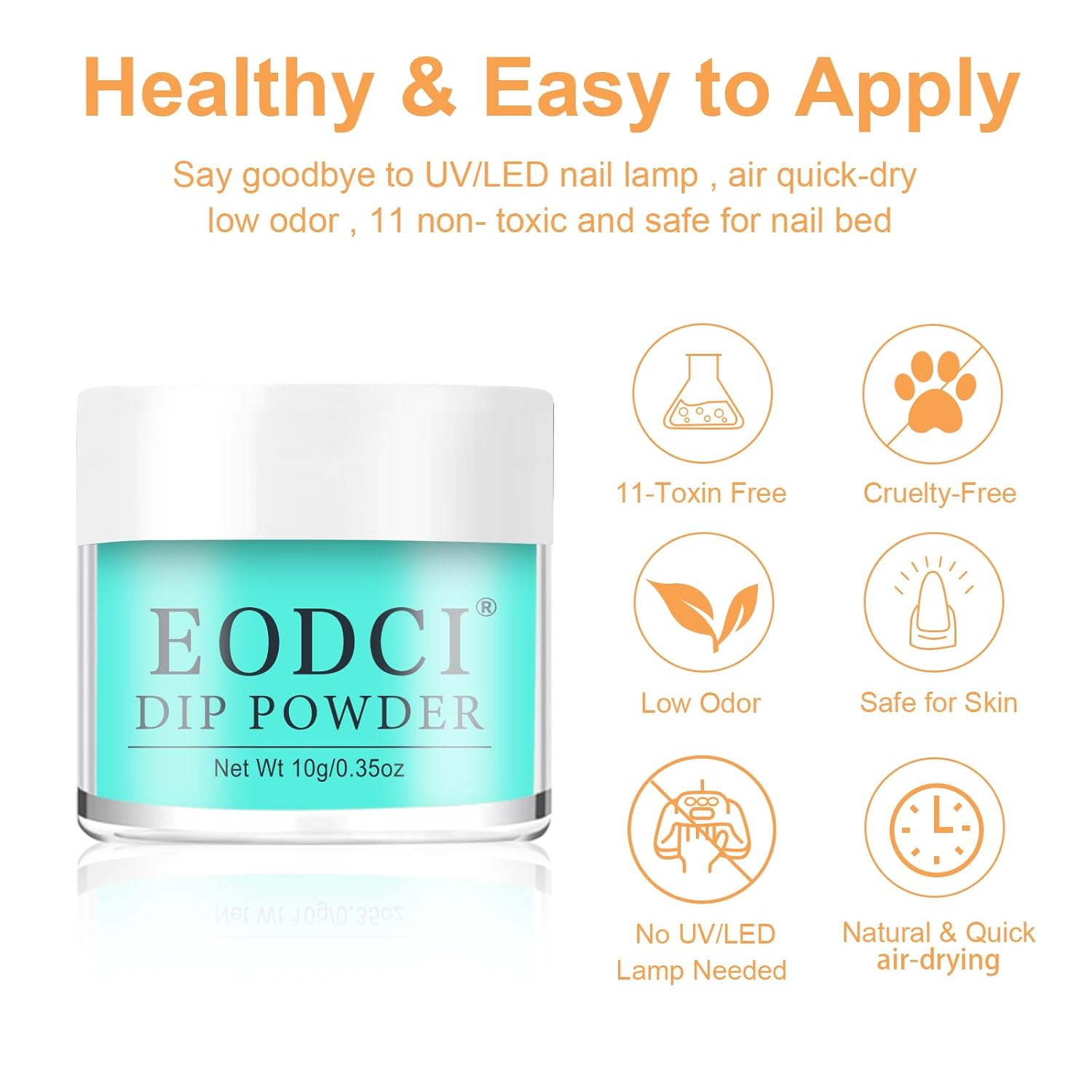 • 【No Lamp Needed】Eodci Nail Dipping Powder does not require UV/LED light to cure, is skin friendly while avoiding skin darkening and damage, safe and easy to use, suitable for beginners and professional nail salons.