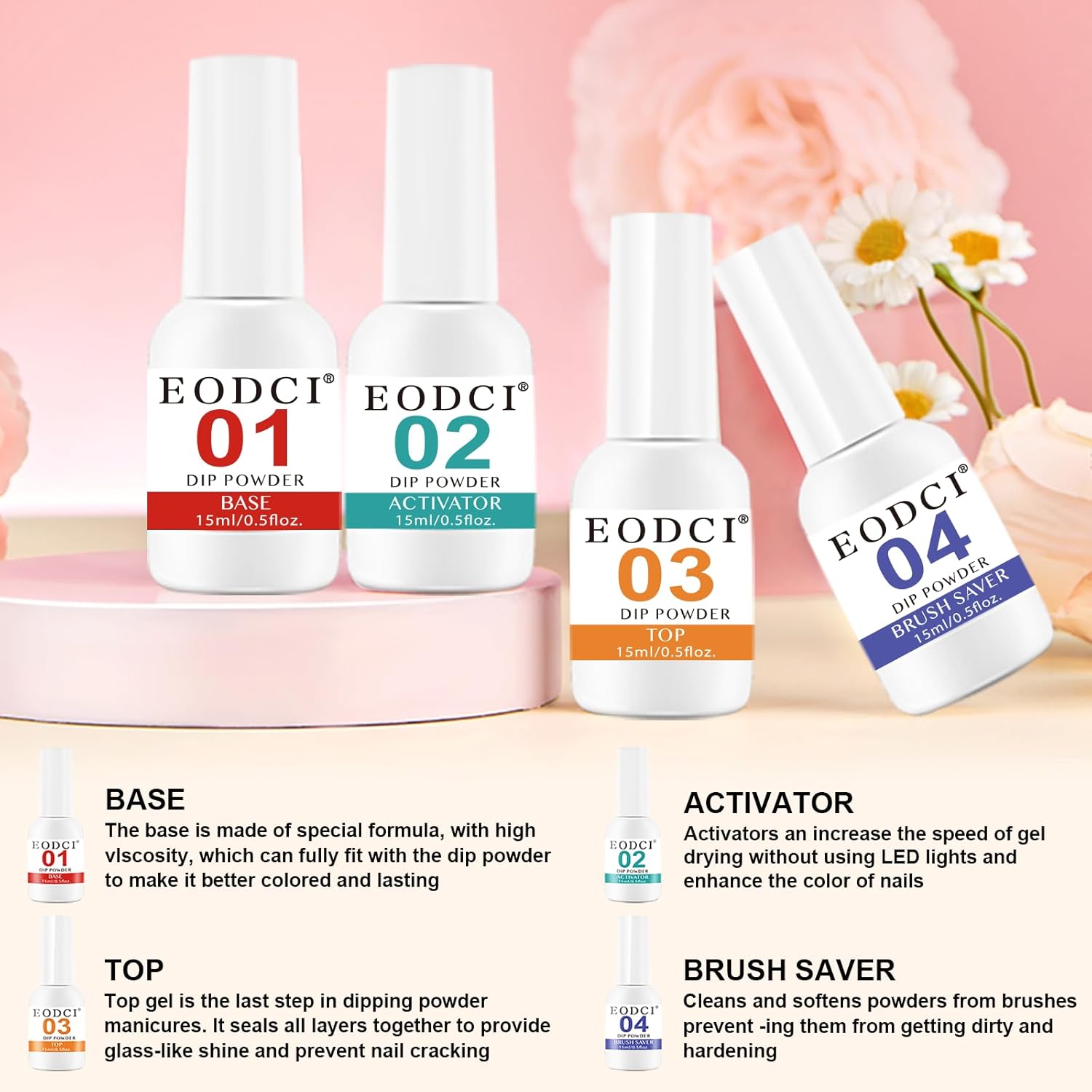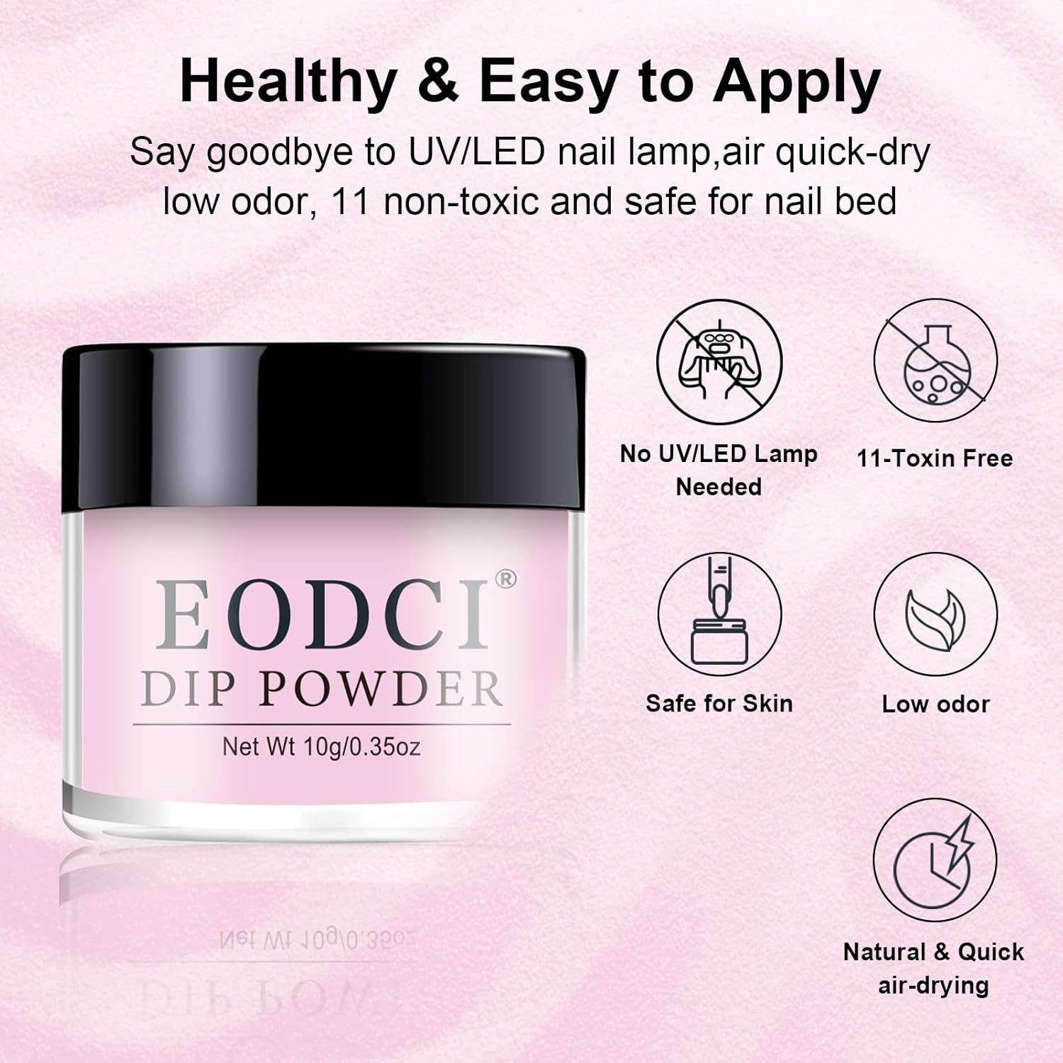 • 【No Lamp Needed】Eodci Nail Dipping Powder does not require UV/LED light to cure, is skin friendly while avoiding skin darkening and damage, safe and easy to use, suitable for beginners and professional nail salons.