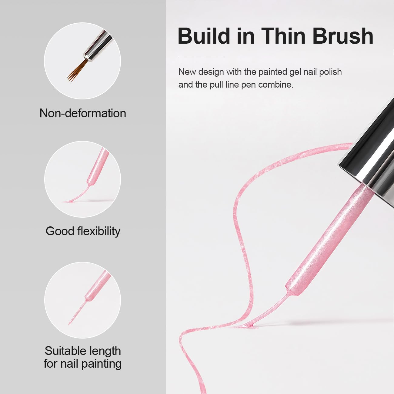 • BUILD IN THIN BRUSH:New design with the pearl white painted gel nail polish and the pull line pen combined is super convenient for the salon or at-home personal use for starters. Each bottle has a thin pen brush, no need to change and wash clean the drawing liner pen brush when doing the nail art