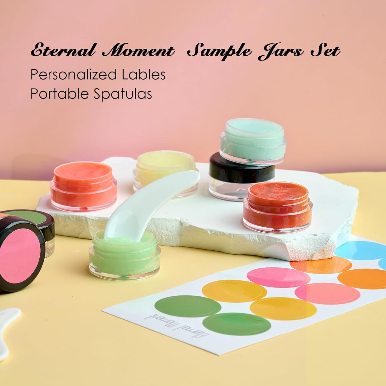 • ★【SUPER VALUE PACK】: You will get 50pack clear 3g/3mL plastic containers with black lids, 50pack colorful labels for distinction and 5 spatulas for dispensing or mixing, used for anything you want to store. Personalized stickers/labels are ideal for business and promotional goods.