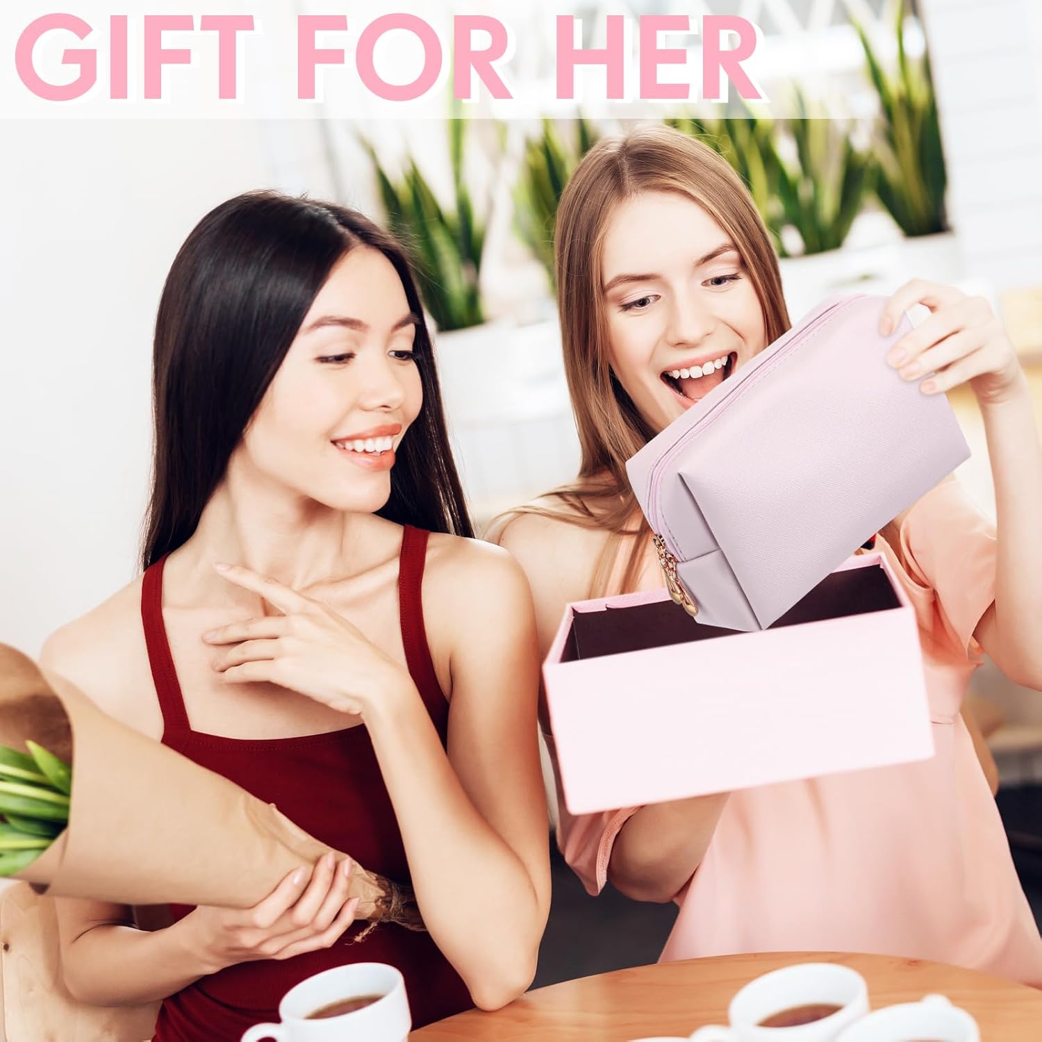Kigeli 15 Pcs Aesthetic Makeup Bags PU Leather Cosmetic Pouches Waterproof Plain Toiletry Bags Makeup Pouches Bulk for Women Party Gift Travel Storage Organizer(Pink Purple)