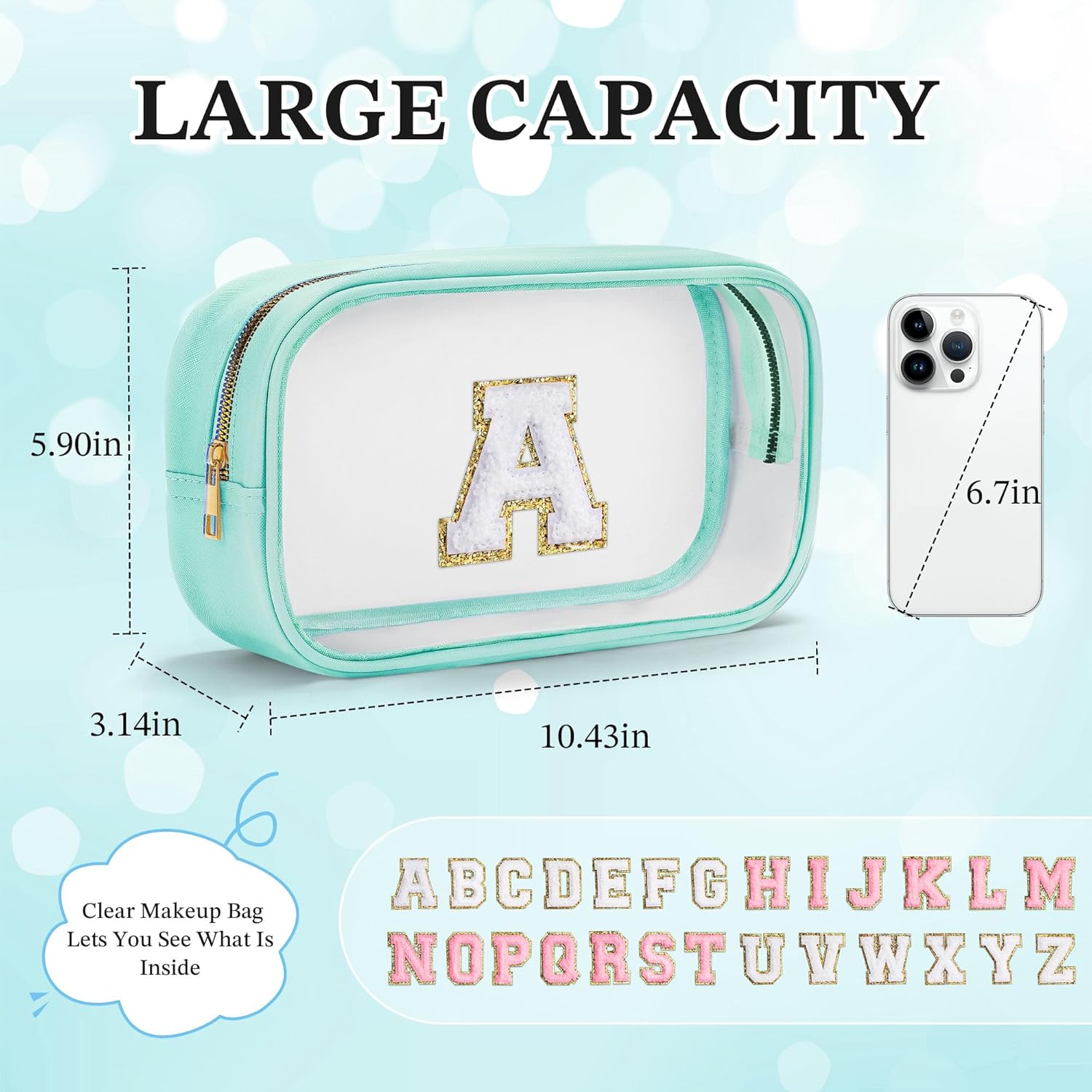 YOOLIFE Initial Clear Makeup Pouch, Clear Makeup Bag Cosmetic Travel Beach Toiletry Bag Travel Essentials Gifts for Women Teen Girlfriend Teacher Mom Birthday Gift for Women Teen Zipper Pouch Blue A
