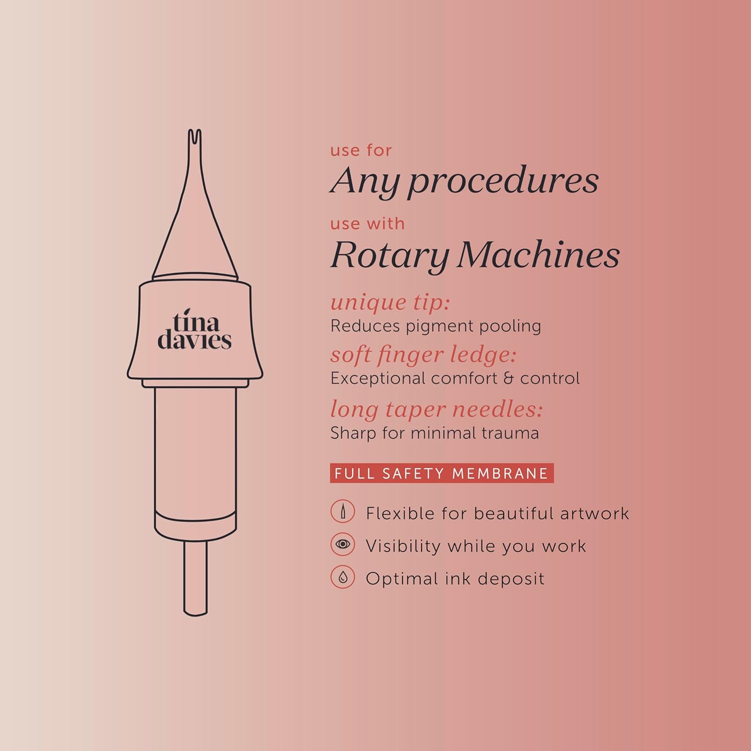 • INNOVATIVE CONSTRUCTION: Supported with an internal stainless steel tube for maximum stability and support. These cartridges are designed with a soft, silicone finger ledge that provides artists with enhanced finger control to increase precision and comfort while reducing hand exhaustion. The needles have an elongated tip and thin casing to give artists better visibility with improved precision and control during your procedure.