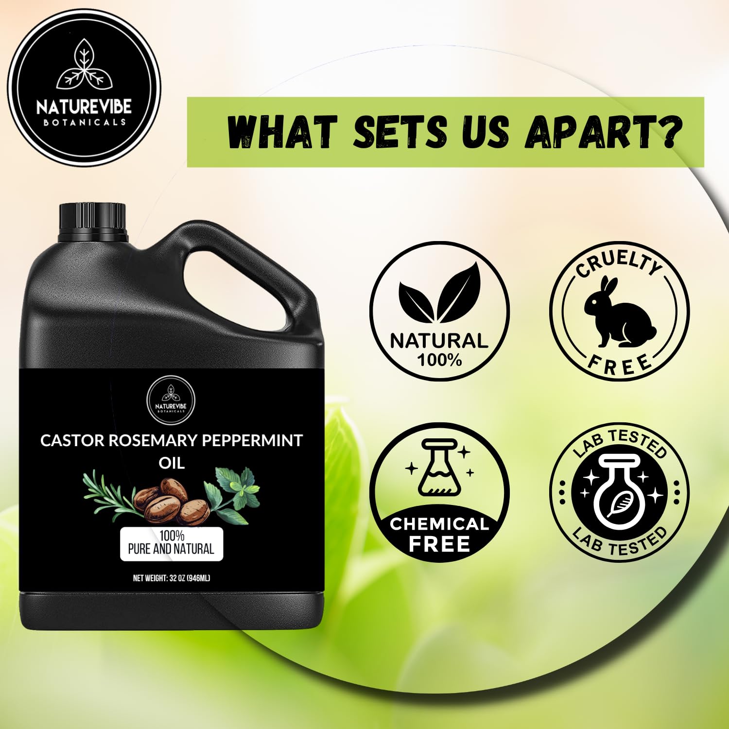• ✅ Naturevibe’s Castor Rosemary Peppermint Oil, is a blend of all three beneficial oils free of fillers or additives, serves as a luxurious moisturizer for both hair and body. It's cherished by men and women alike as a staple in their daily skincare routines.