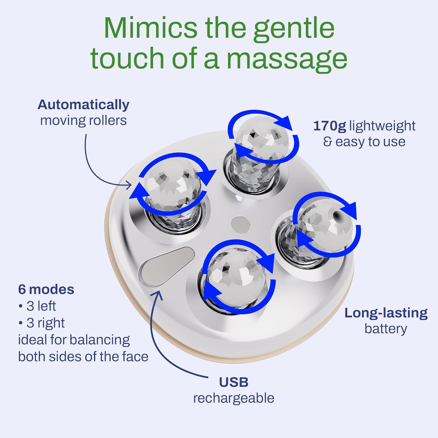 • Our versatile facial massager tool combines very gentle microcurrent technology, like a gua sha, and a facial toning device to support your regular routine and help maintain a refreshed appearance.