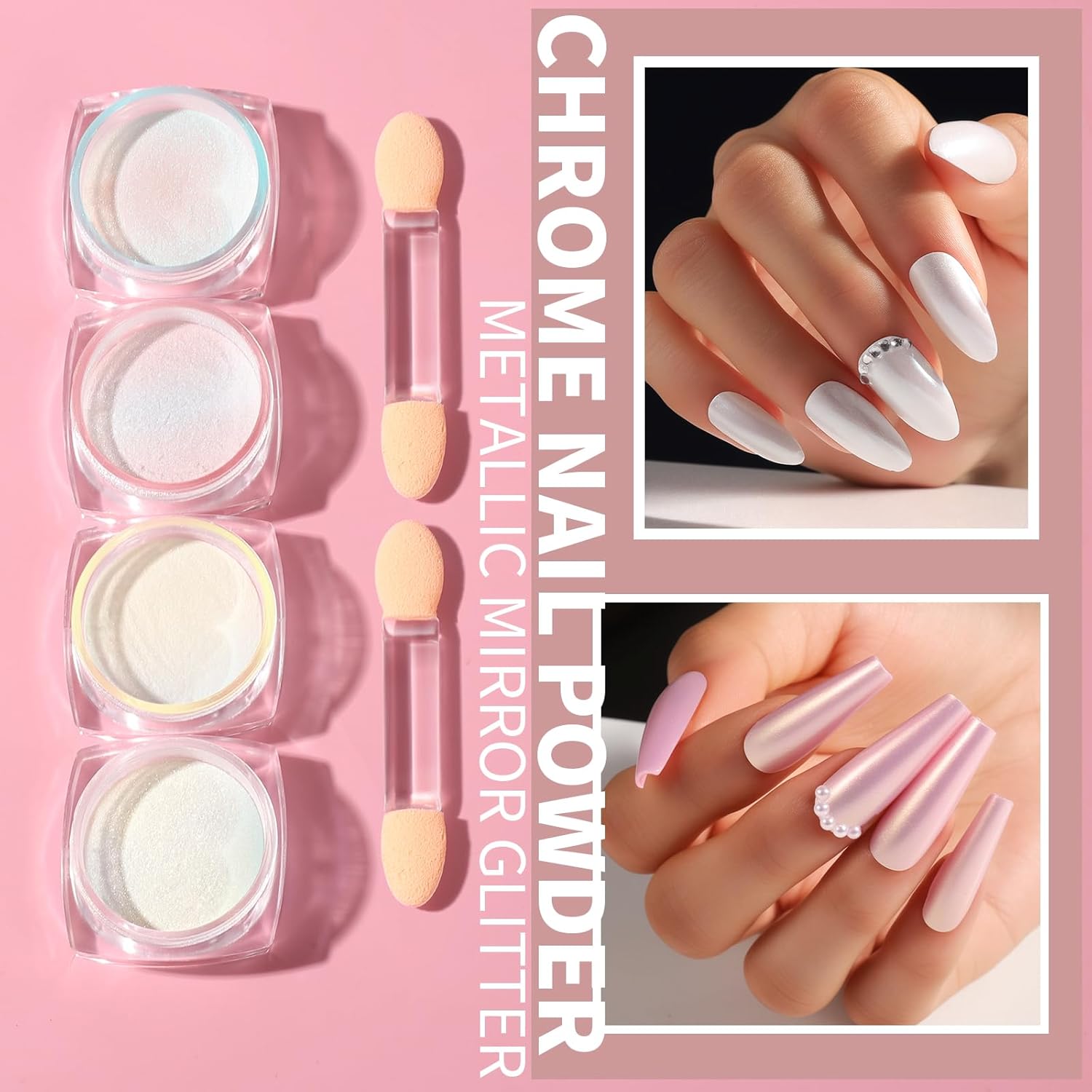 • Chrome Nail Powder: 4 color pearl chrome nail powder: iridescent blue, pink, yellow and pearl white. Each color have 1 gram, widely used for UV gel nails, acrylic nails, natural nails and false nail tips. Super shining metallic mirror effect nail glitter powder. You can make different mirror effect with different base coat color. 10 sheets self-adhesive flower nail stickers for nail art in different patterns, colors and styles. 3D nail art sticker decals make you nail art more delicate.