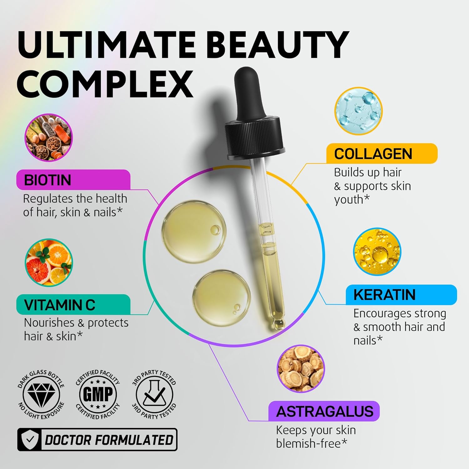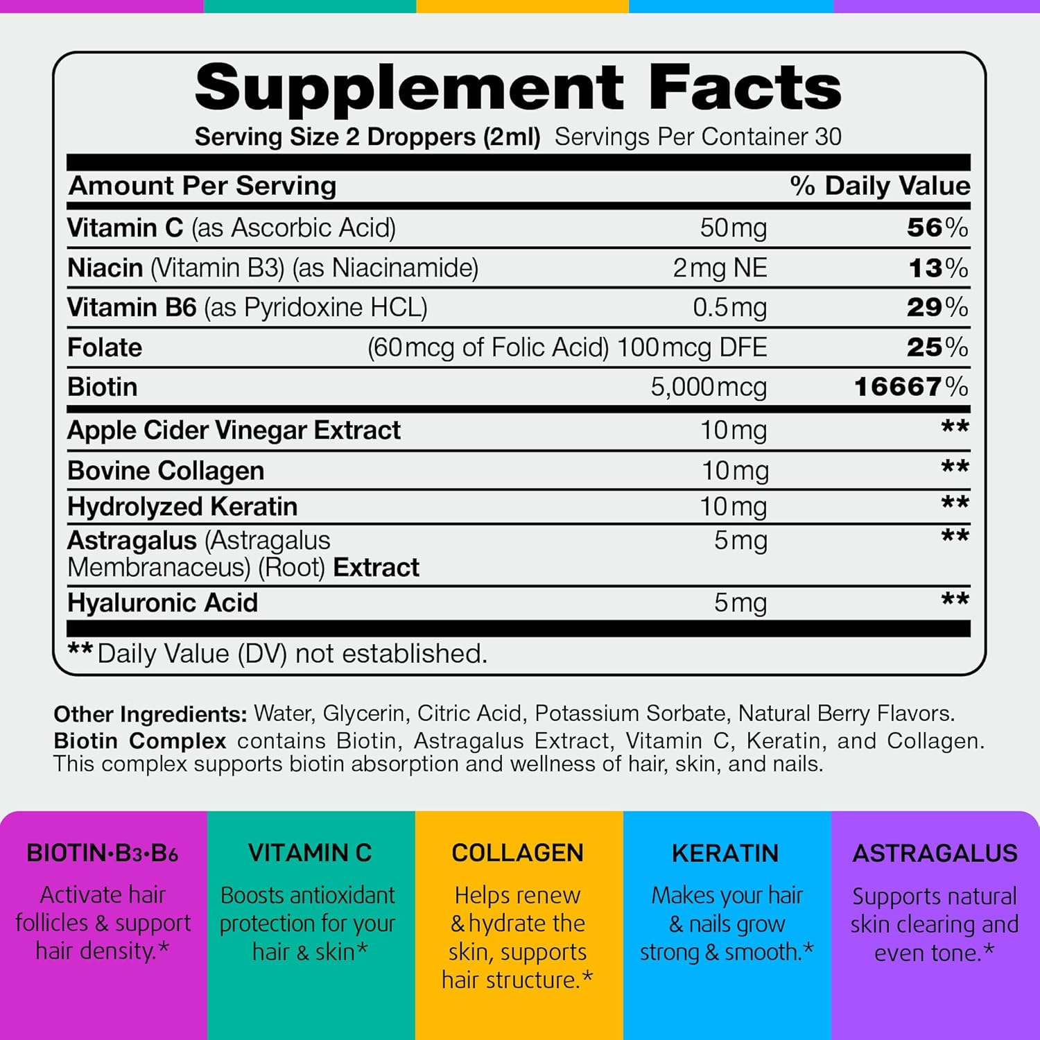 Liquid Biotin 5000mcg Drops – 80,000mcg Hair Growth Vitamins with Astragalus Collagen & Keratin, Extra Strength Hair Skin and Nails Vitamins - Biotin and Collagen Supplements for Women & Men - 2 fl oz