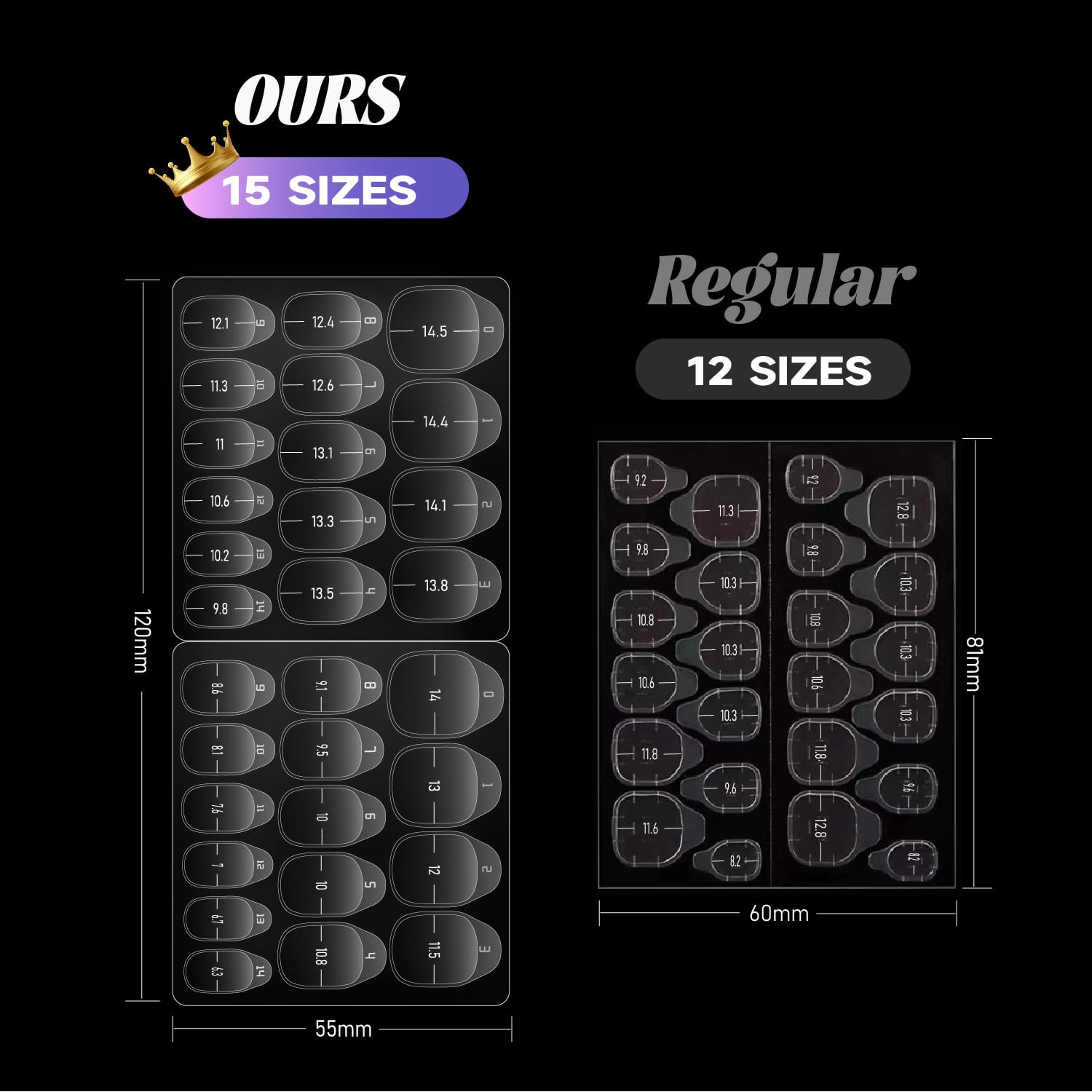 • 【300PCS Nail Sticky Tabs in 15 Sizes】 Includes 10 sheets with 30 nail sticky tabs per sheet (total 300 tabs) in 15 numbered sizes—suitable for most nail beds. Ideal for press on nails, especially long styles.