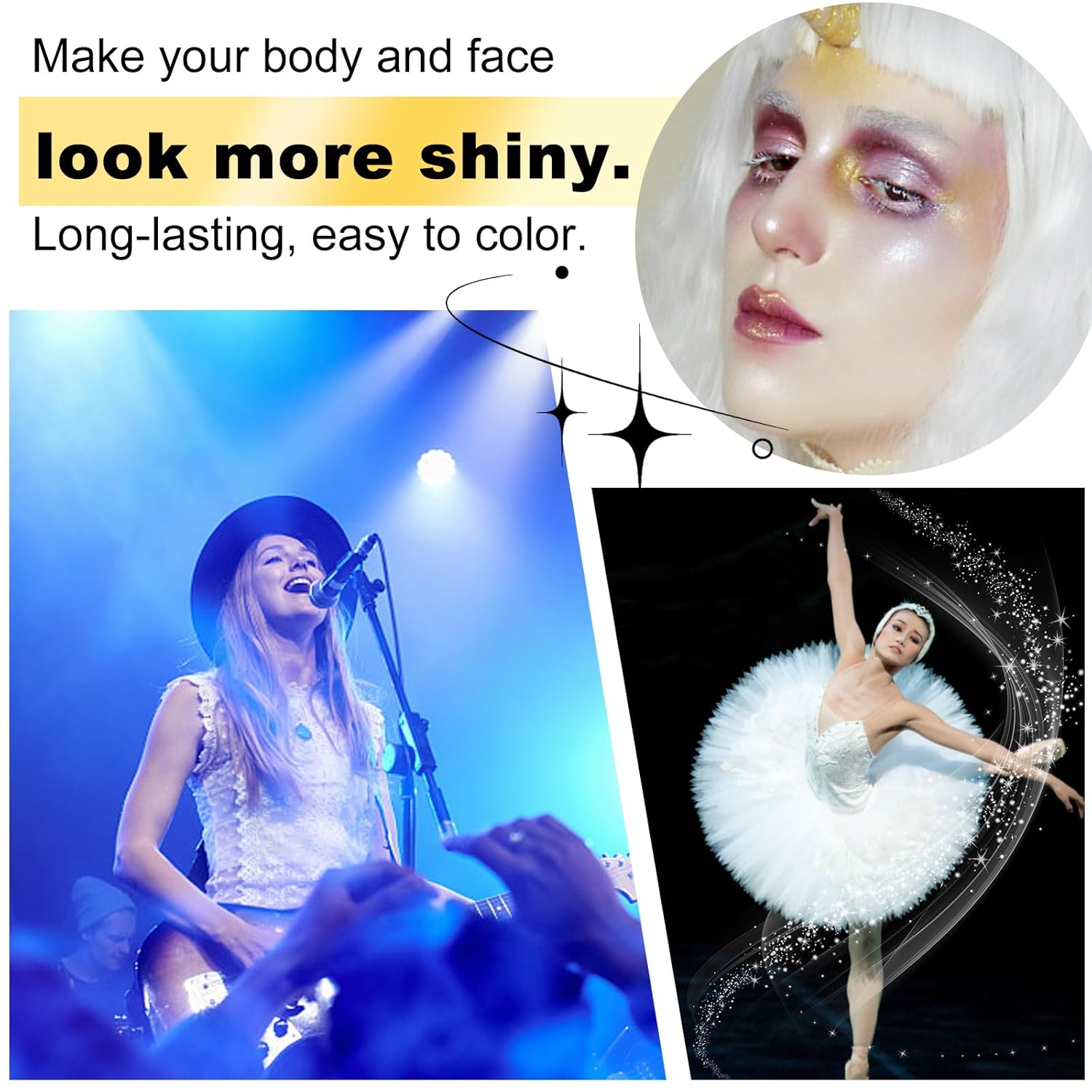 • ✦ EASY ON & EASY OFF -- Ideal for all skin types, it offers a quick-drying finish for instant luminosity, works as a body highlighter and gives your skin an elastic glossy glow. Apply with your hands or use a brush to evenly spread onto skin wherever you want to shape and highlight. When it's time to wash off, a little soap and water will do the trick, leaving your skin fresh and clean.