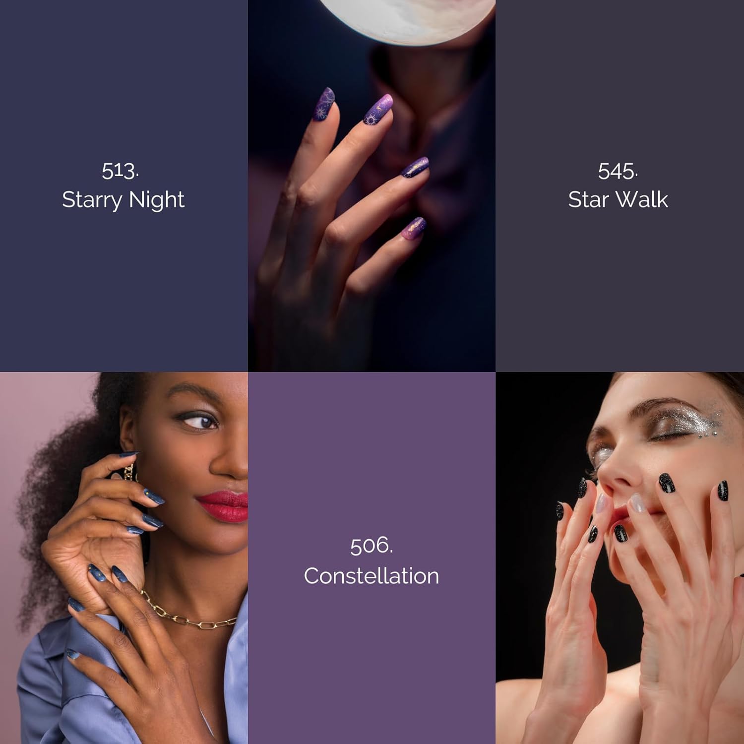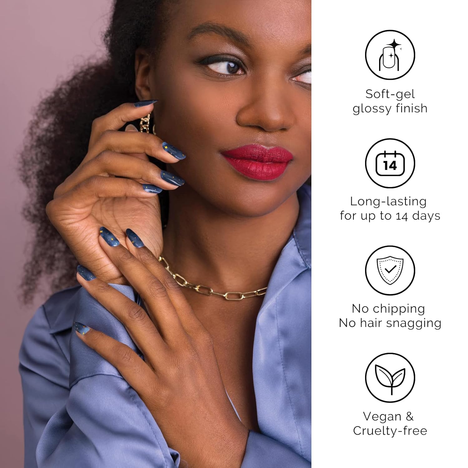 NAILOG Semi Cured Gel Nail Strip Starter Kit - (Include 60Pcs Nail Stickers, 1 UV Lamp and 2 Nail Files) Long Lasting Gel Nail Wraps Gift Kit for Christmas Day, Skyscape