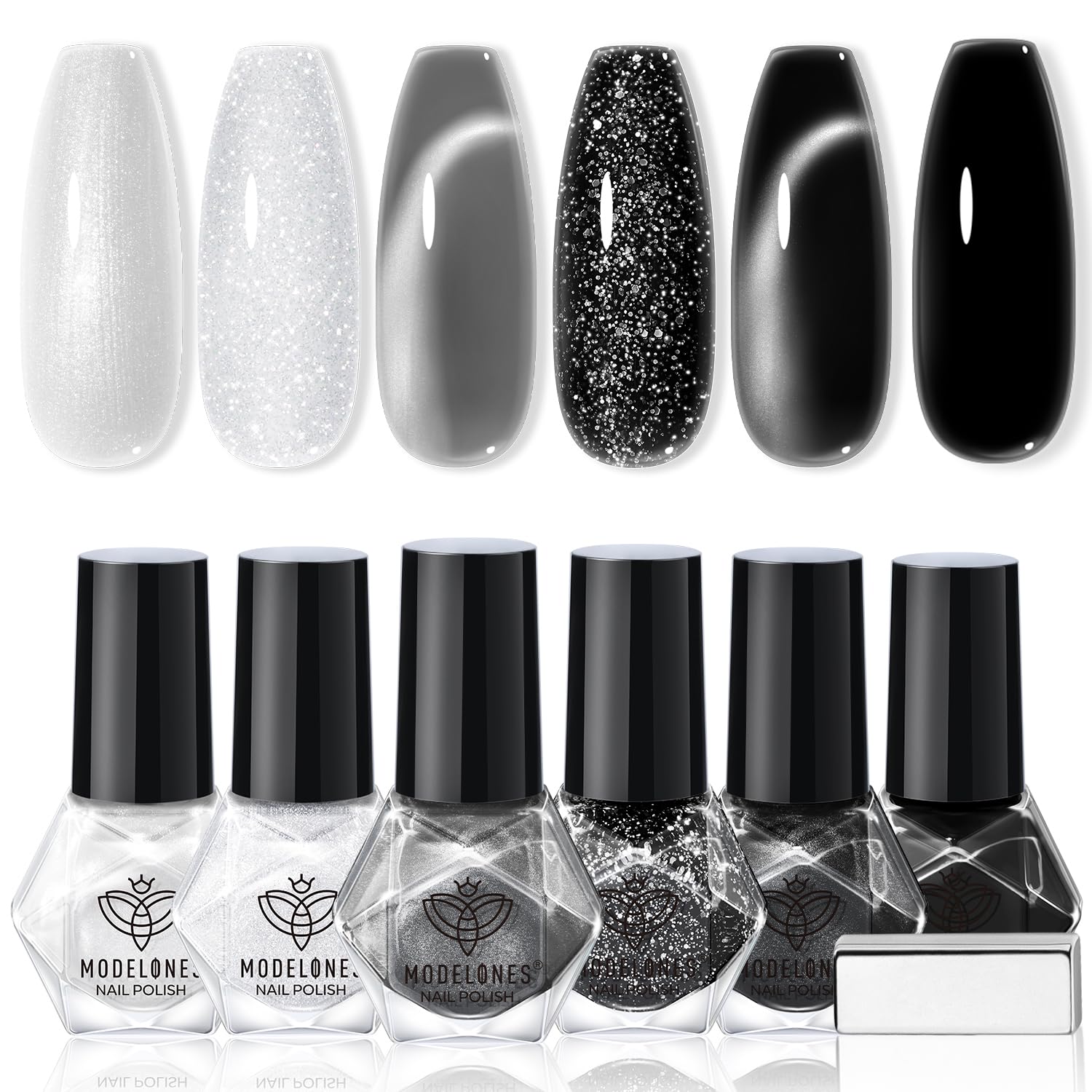 • 2025 Fashion Nail Polish Set: Modelones nail polish set offers a stunning range of 6 white & black colors. This nail polish set is perfect for all seasons and it must-have for your seasonal nail collection, suitable for any occasion