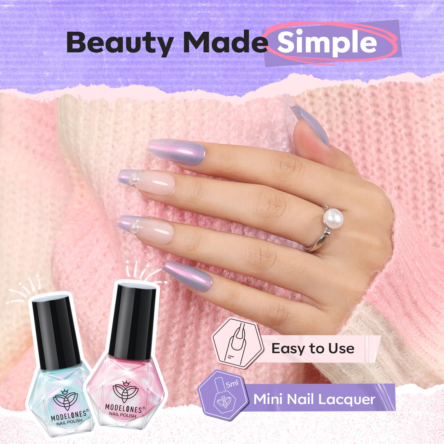 • 2025 Fashion Nail Polish Set: Modelones Shimmer & Holographic Colors Nail Polish Set offers a stunning range of 6 charm colors. This nail polish set is perfect for summer and it must-have for your seasonal nail collection, suitable for any occasion