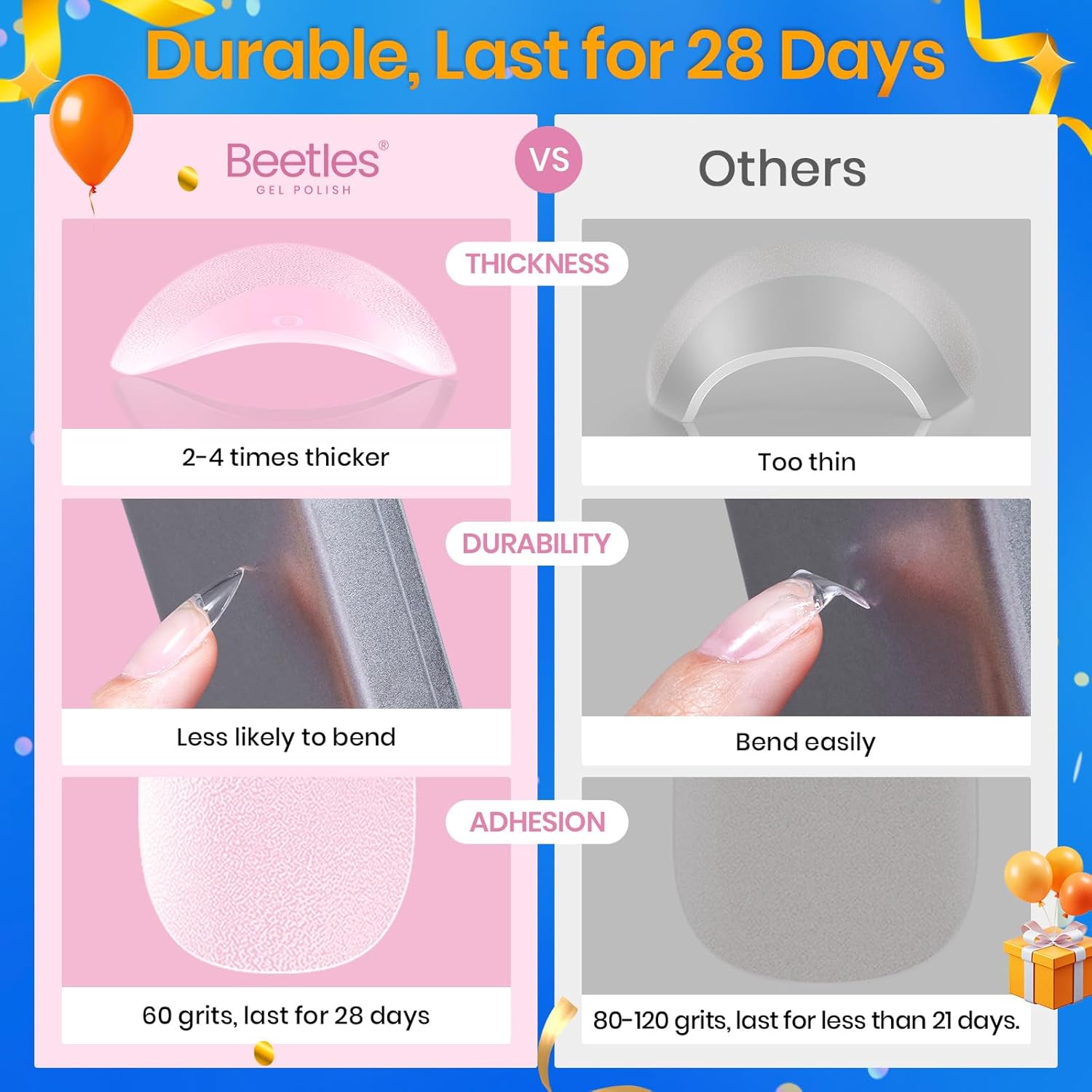 • ❤Fit Nails Perfectly: This 576 PCS false nail tips set comes in 12 sizes for effortless matching to each finger. Each nail tip in the transparent series features a thinner edge to fit your natural nails. The pre-filed design reduces the need for extensive filing.Beetles fall nail tips offer a more natural appearance, resembling nails that have grown out naturally.