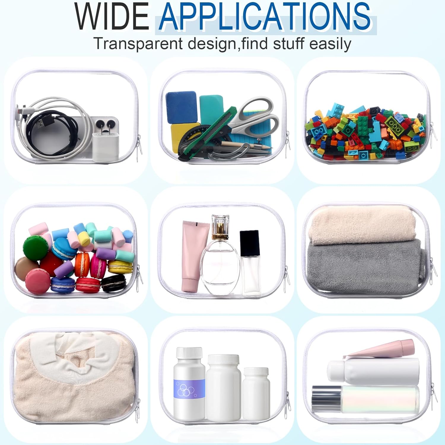 • Transparent Design: the completely transparent design allows you to see the contents of each bag at a glance; This saves the need to open each bag individually, saving you time and effort; You can easily locate what you need without rummaging through multiple bags