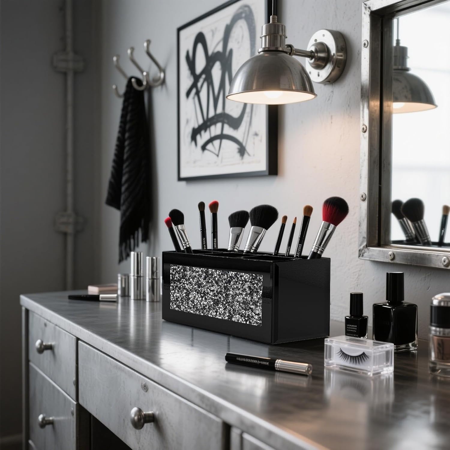 • Multiple Slot and Color Choices: With 6 slots available, this makeup organizer allows for easy sorting of your beauty tools. Choose from the classic silver or the bold black finish to match your decor. This holder enhances both the functionality and style of your bathroom or vanity.